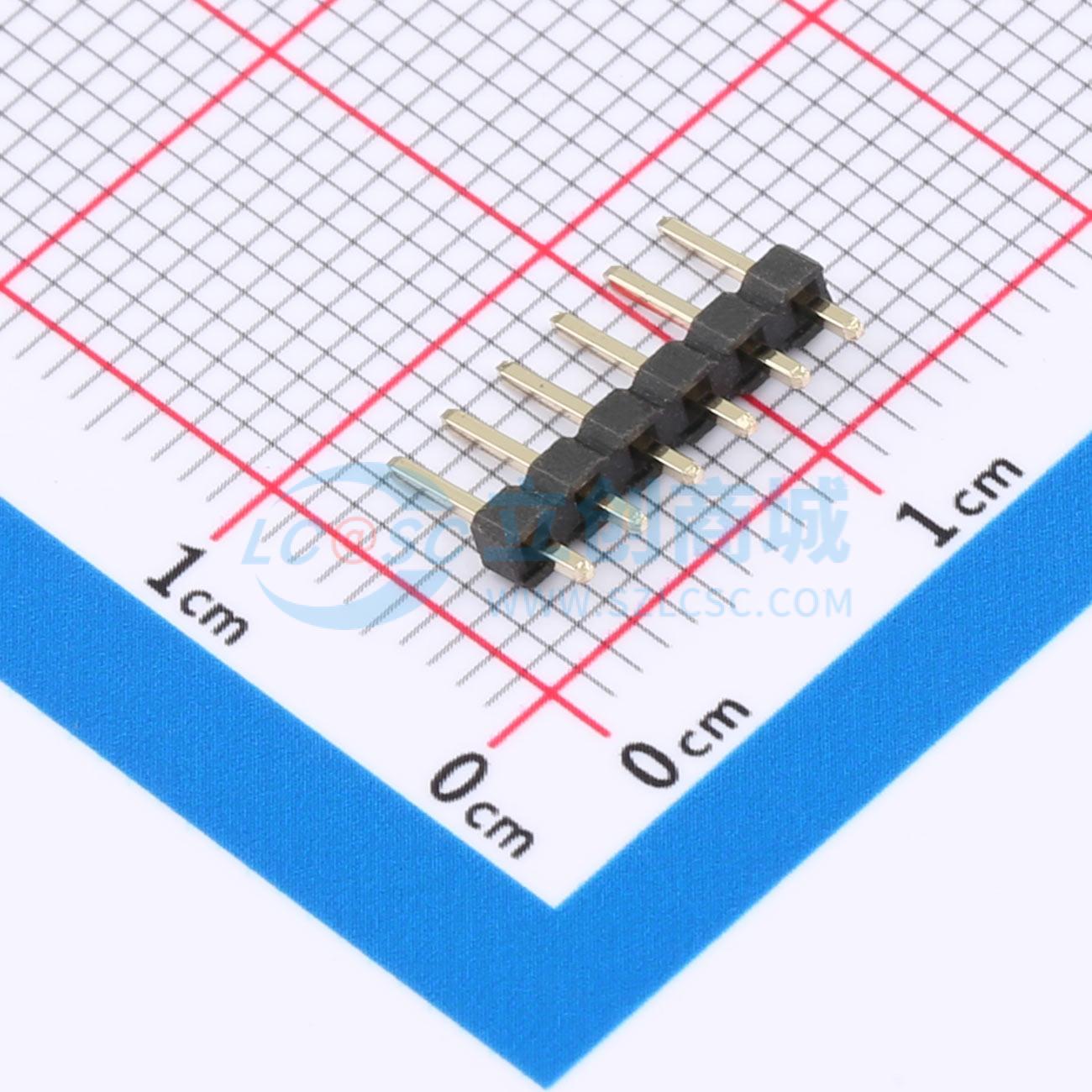 - 2.0mm 排针,单排,180度,塑高1.5mm,塑宽2.0mm,上针C4.0 下针D1.8mm,,6T料,Au足1u",06P