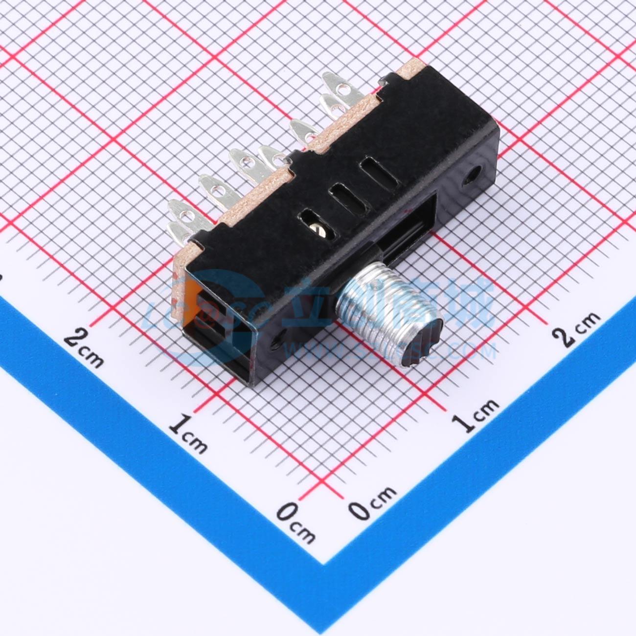 - 立式2P3T/柄长7.0mm/行程3.0mm/铁壳高度8.1mm/圆柄攻牙/DIP