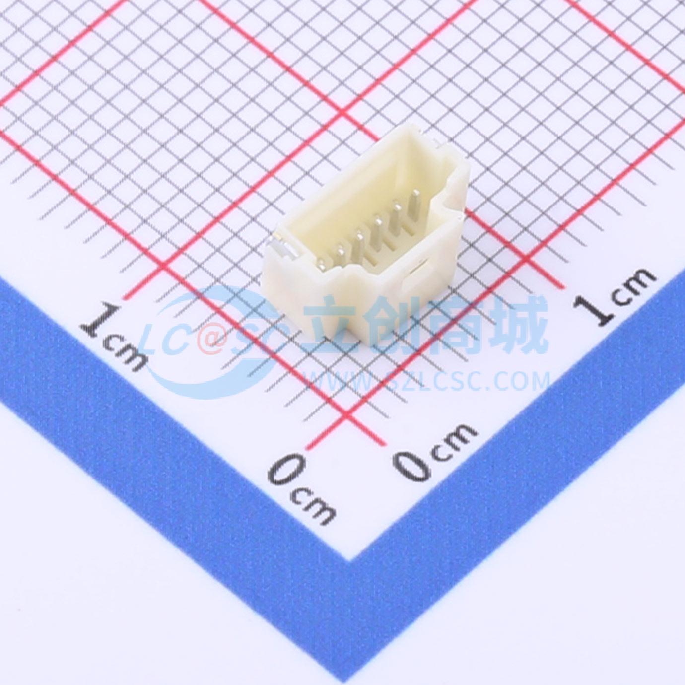 - 间距1.00mm,微型卡扣式PCB排针,单排,直角,表面贴装,镀锡,内置正向锁扣,6路,本色