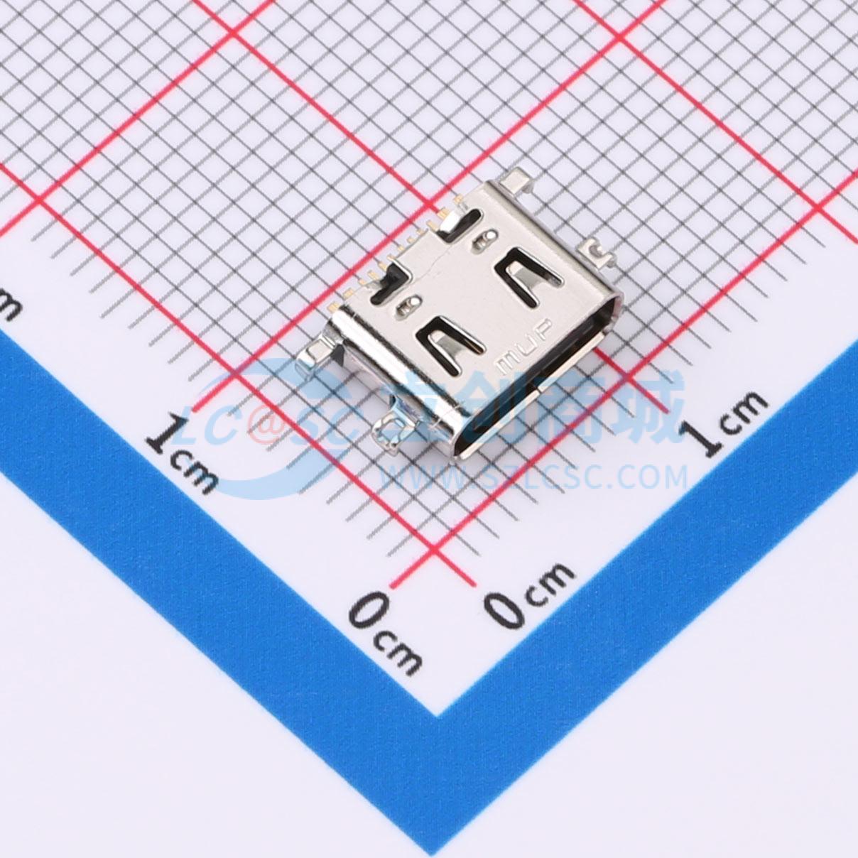 - USB C母座/16P/CH-0.02/Au3/单排SMT/SUS304/PA9T/黑色/冷封1400/14000/无柱/沉板外壳脚长0.70,带弹片,L6.50