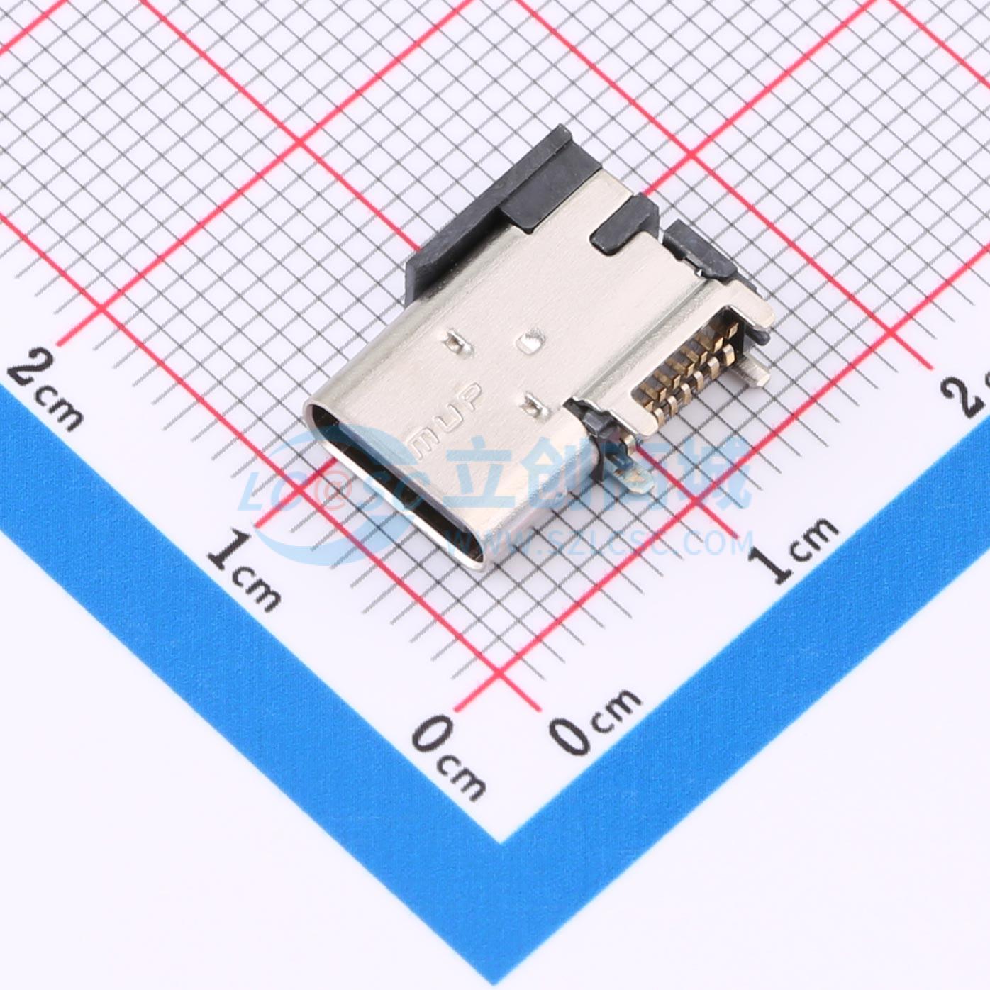- USB C母座/16P/CH4.58/Au1/双排SMT/SUS304/LCP/黑色/冷封500/4000/有柱/侧立式外壳底面带凸点