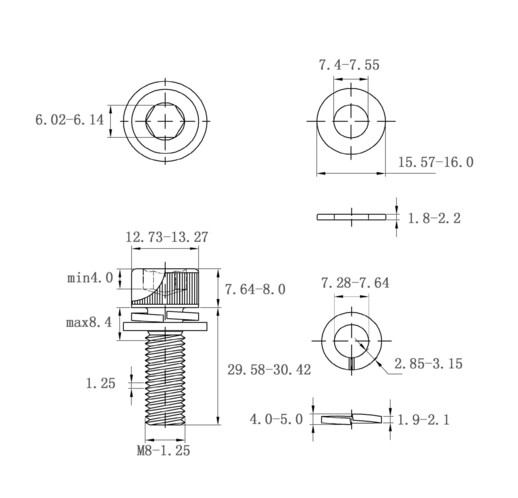 法思特内六角圆柱头机螺钉平弹垫组合-滚花不锈钢 M8*30