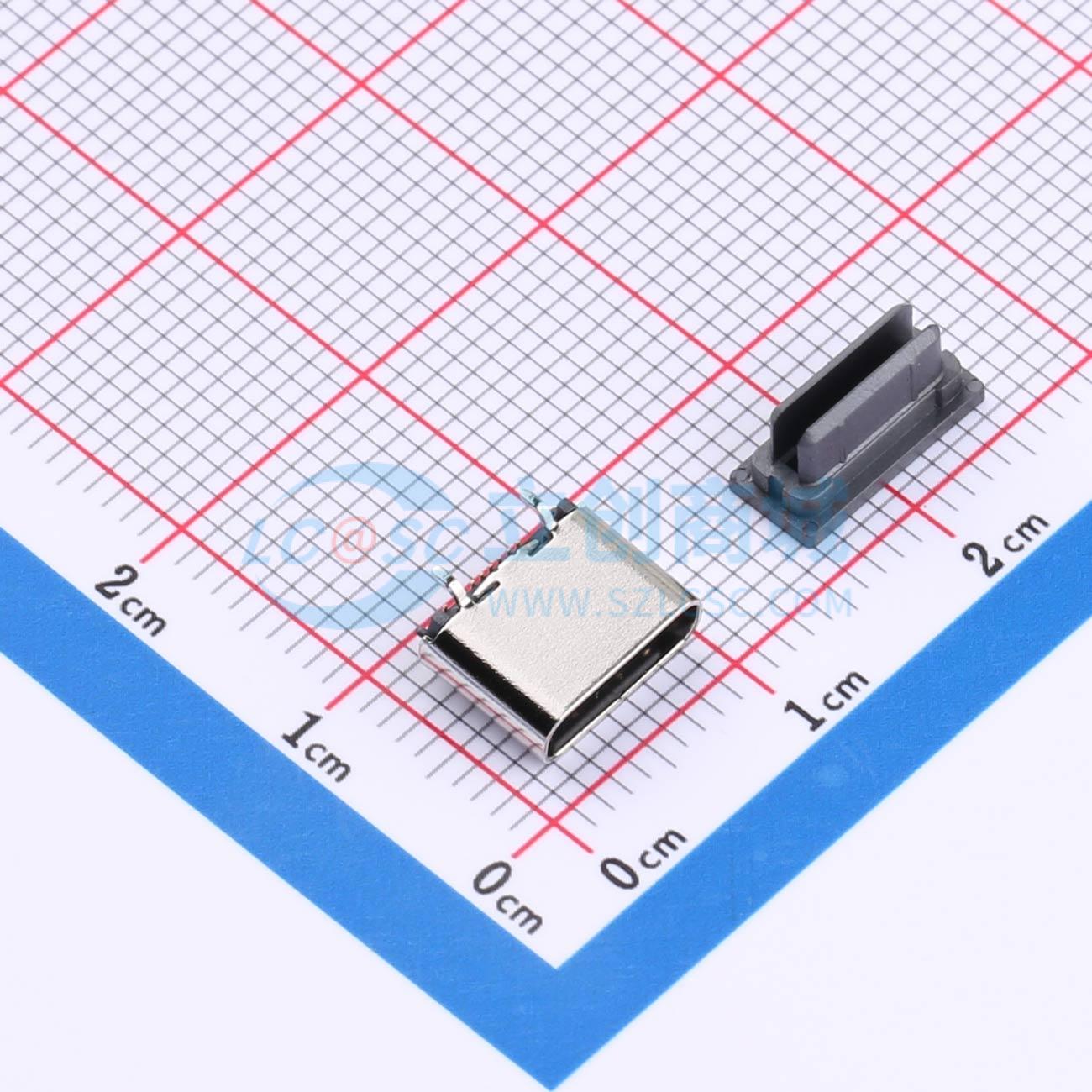 TYPE-C母座 16P 直立式双排(H6.8) LCP 黑色C7025 1u" Au SUS304 镀亮镍 无弹片