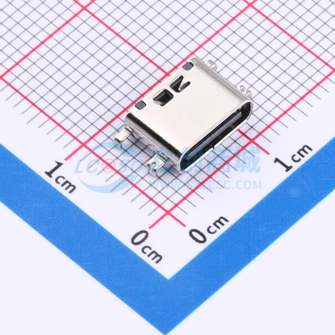 TYPE-C母座 16P 四脚插板沉板0.8 LCP 黑色C7025 1u" 304 镀亮镍