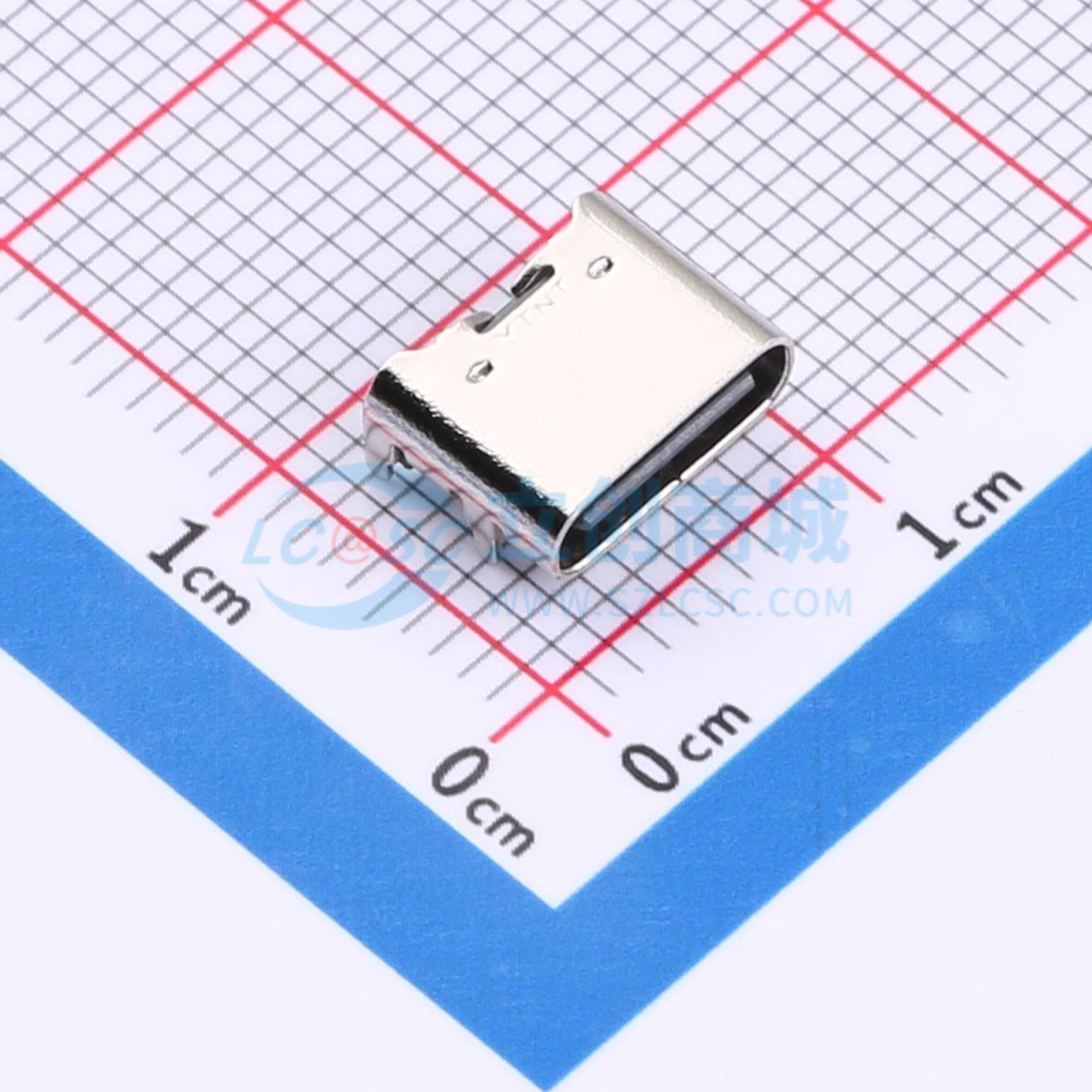 TYPE-C母座 6P 四脚插板 LCP 黑色 镀亮镍 长脚0.95 体长6.8 (插拔3000次)