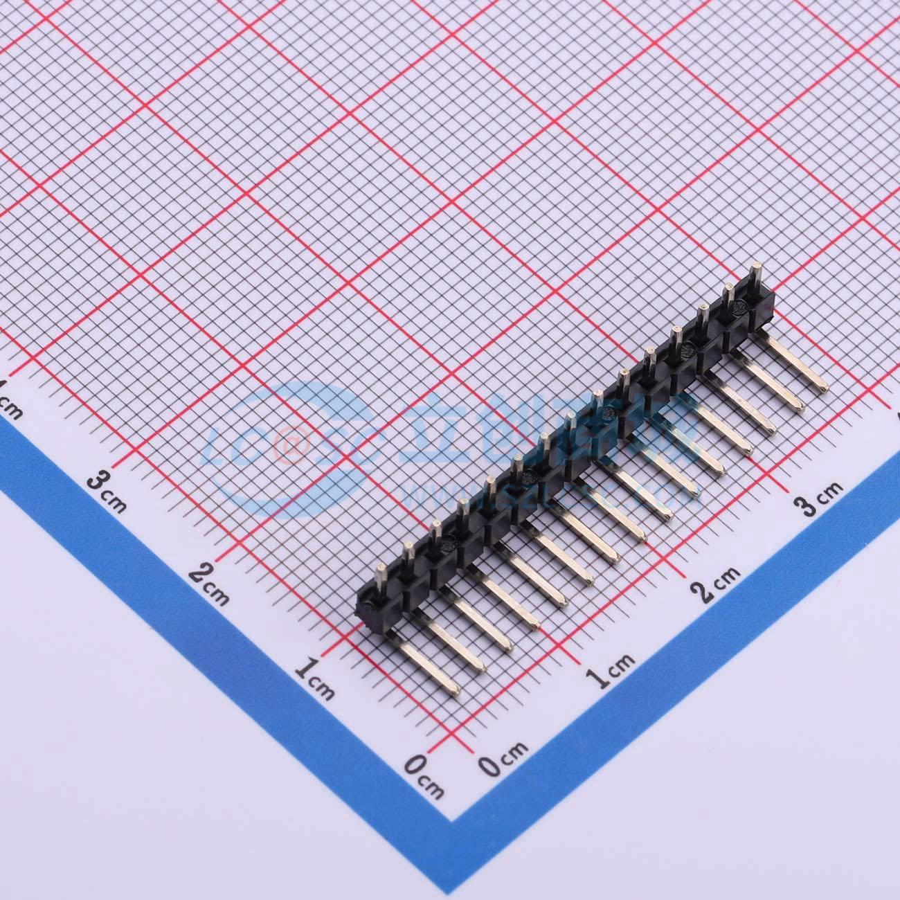 - 单排排针 间距2.54mm 1*15P 正向 弯插 PA6.0 PC3.0 L=13.8 PBT 镀金GF