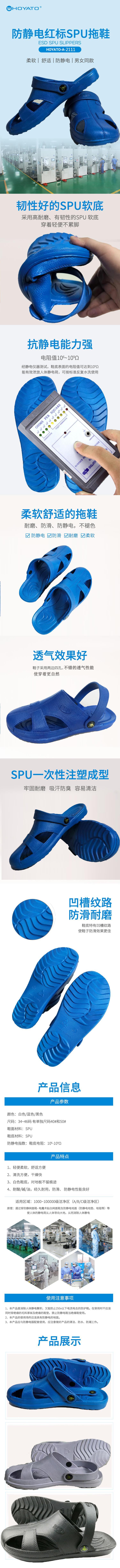 本款HOYATO(好亚通)2111-36-black防静电护趾四孔拖鞋采用SPU一次性注塑成型工艺,整体结构坚固耐用,具有良好的抗压性和耐磨损性能。鞋面与鞋底均使用高韧性SPU材料,具备柔软舒适、轻便不累脚的特点,适合长时间穿着。