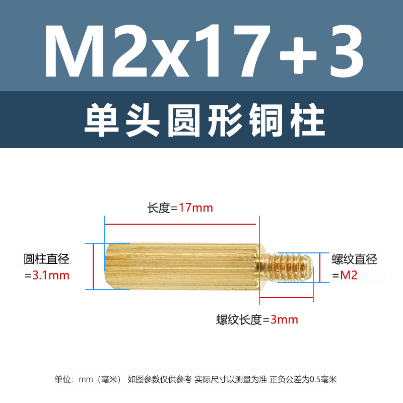新宏辉达 黄铜单通头圆形铜柱 PCBA主板紧固隔离螺柱 M2*17+3 DTTZ1016