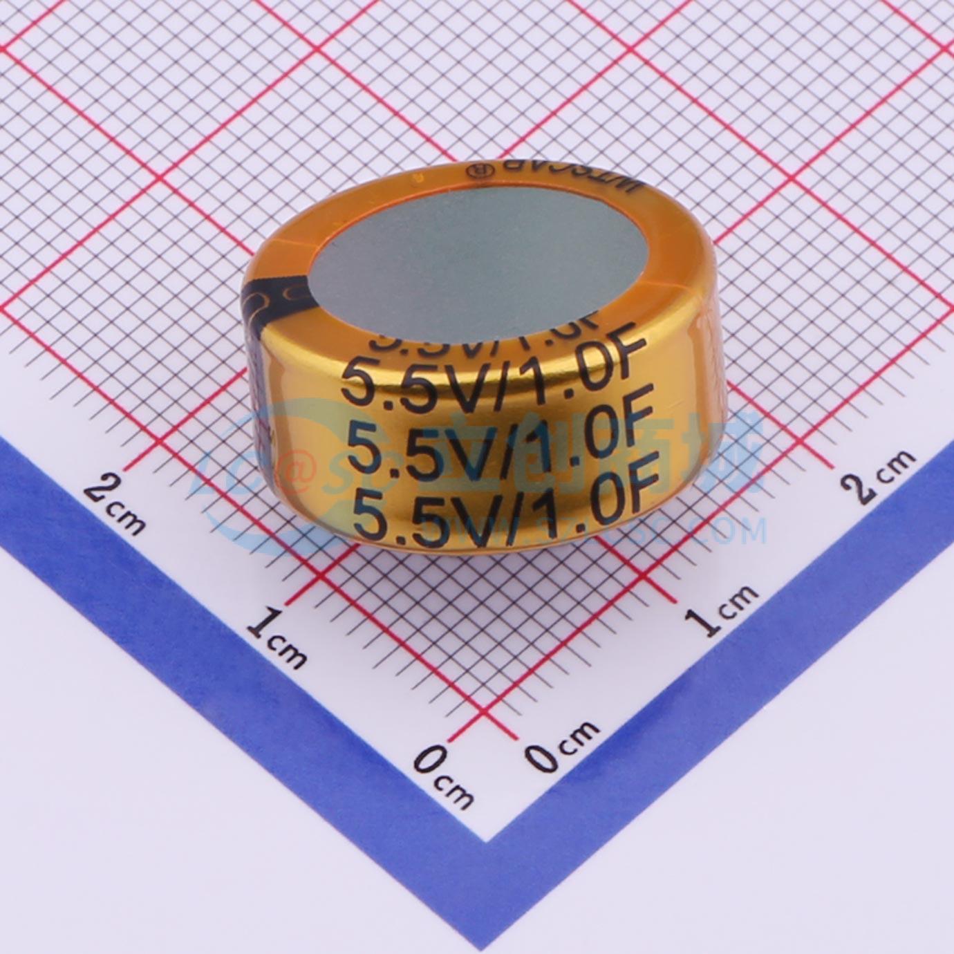 - 特性:额定容量:1.0F。容量偏差:-20%~+80%。工作电压:5.5V。浪涌电压:6.0V。标称内阻:交流阻抗30Ω,直流阻抗45Ω。产品重量:11.5±0.05g。最大峰值电流(1s):59mA。漏电流(24h):≤0.02mA。工作温度:-40~85°C。储存温度:-40~85°C。循环寿命:25°C,额定电压到半额定电压间循环充放电50万次,|ΔC/C|≤30%,ESR≤4倍初始值(25°C)