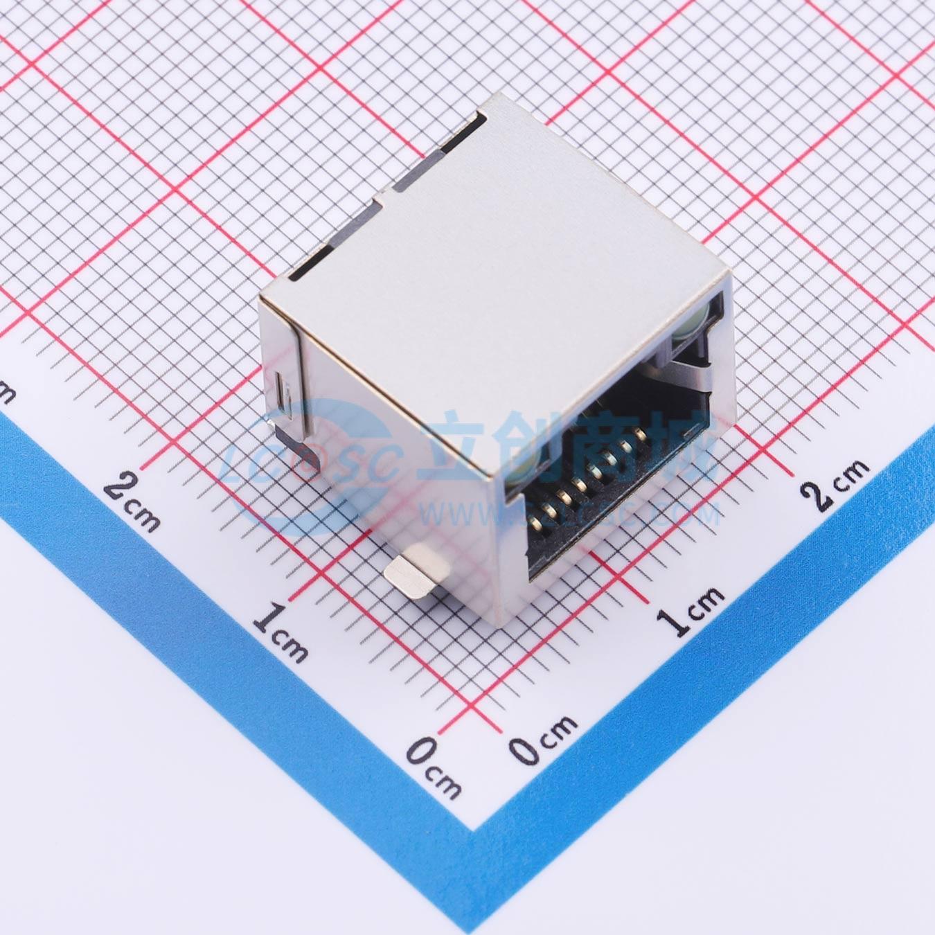 - 网口插座 RJ45-8P/8C 5JA SMT 全贴 带定位 带灯左黄右绿 带屏蔽