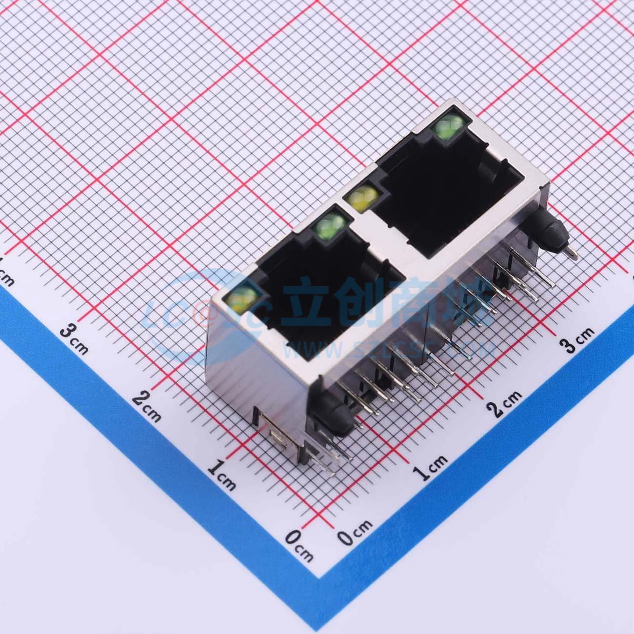 - 网口插座 RJ45-8P/8C 5JA-1*2 双胞胎 弯插 带屏蔽 带灯 无弹片