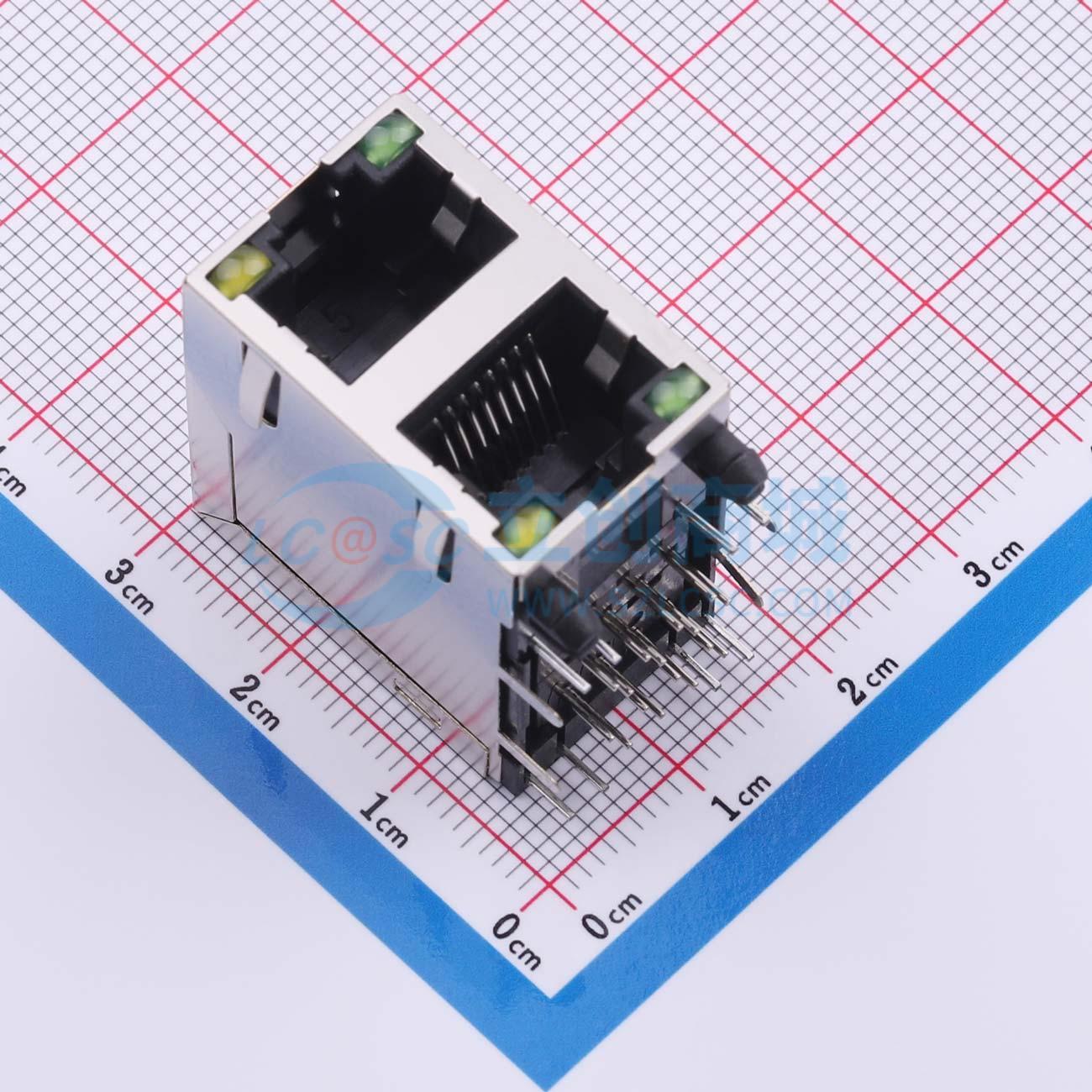- 网口插座 RJ45-8P/8C 5JC-2*1 弯插 带屏蔽 带灯 带弹