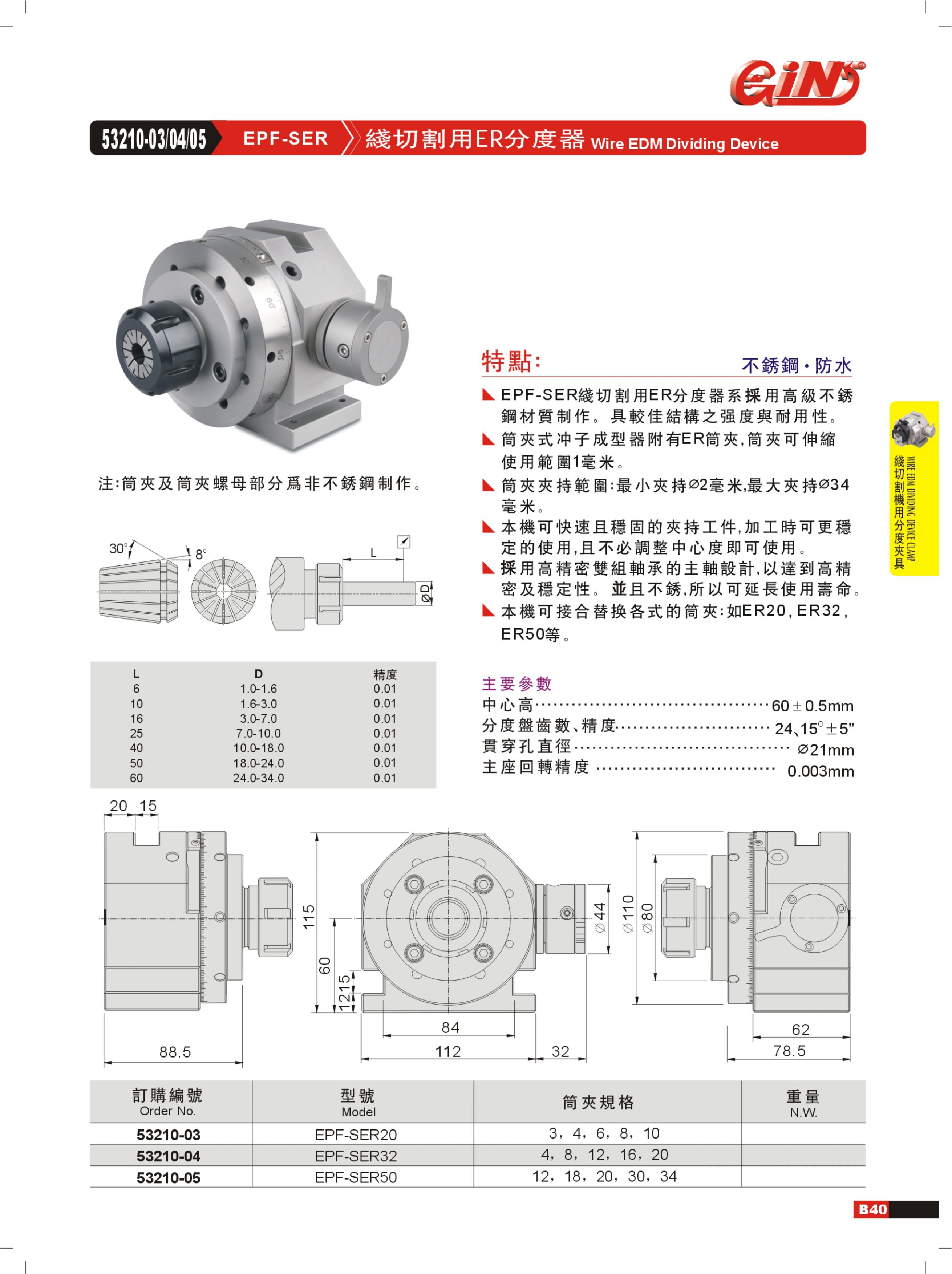 GIN(精展) EPF-SER50 53210-05 线切割用ER分度器