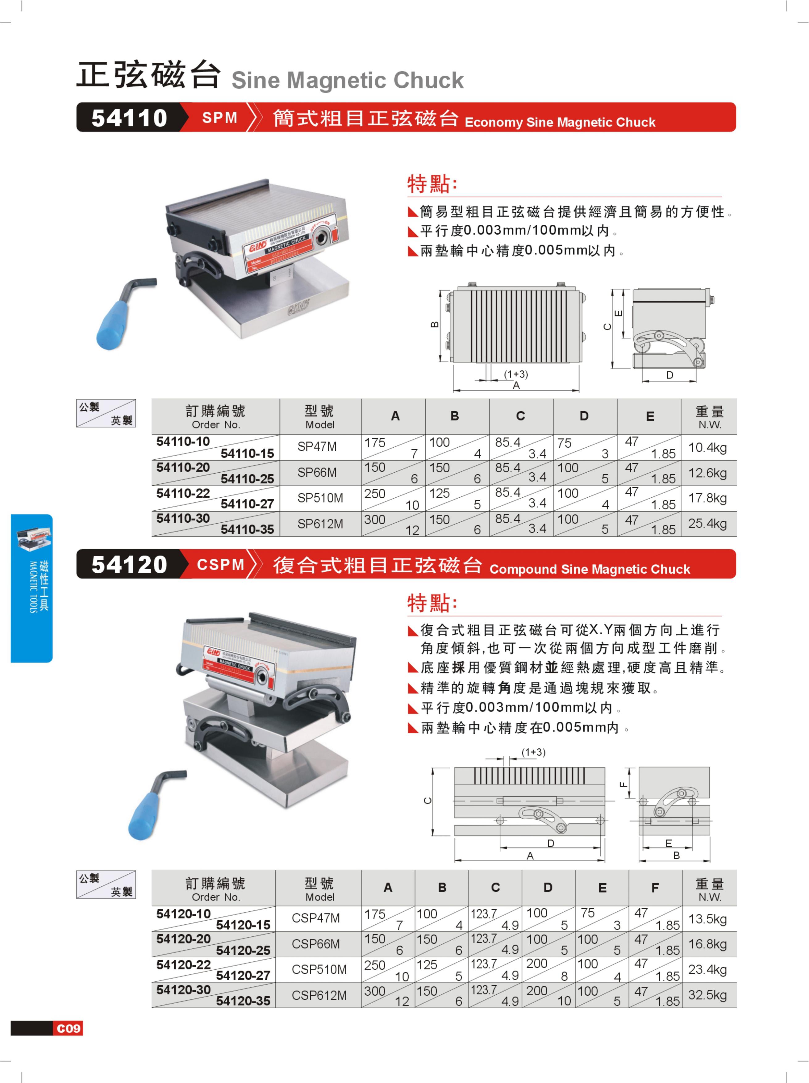 GIN(精展) SP510M 54110-27 简式粗目正弦磁台(英制)