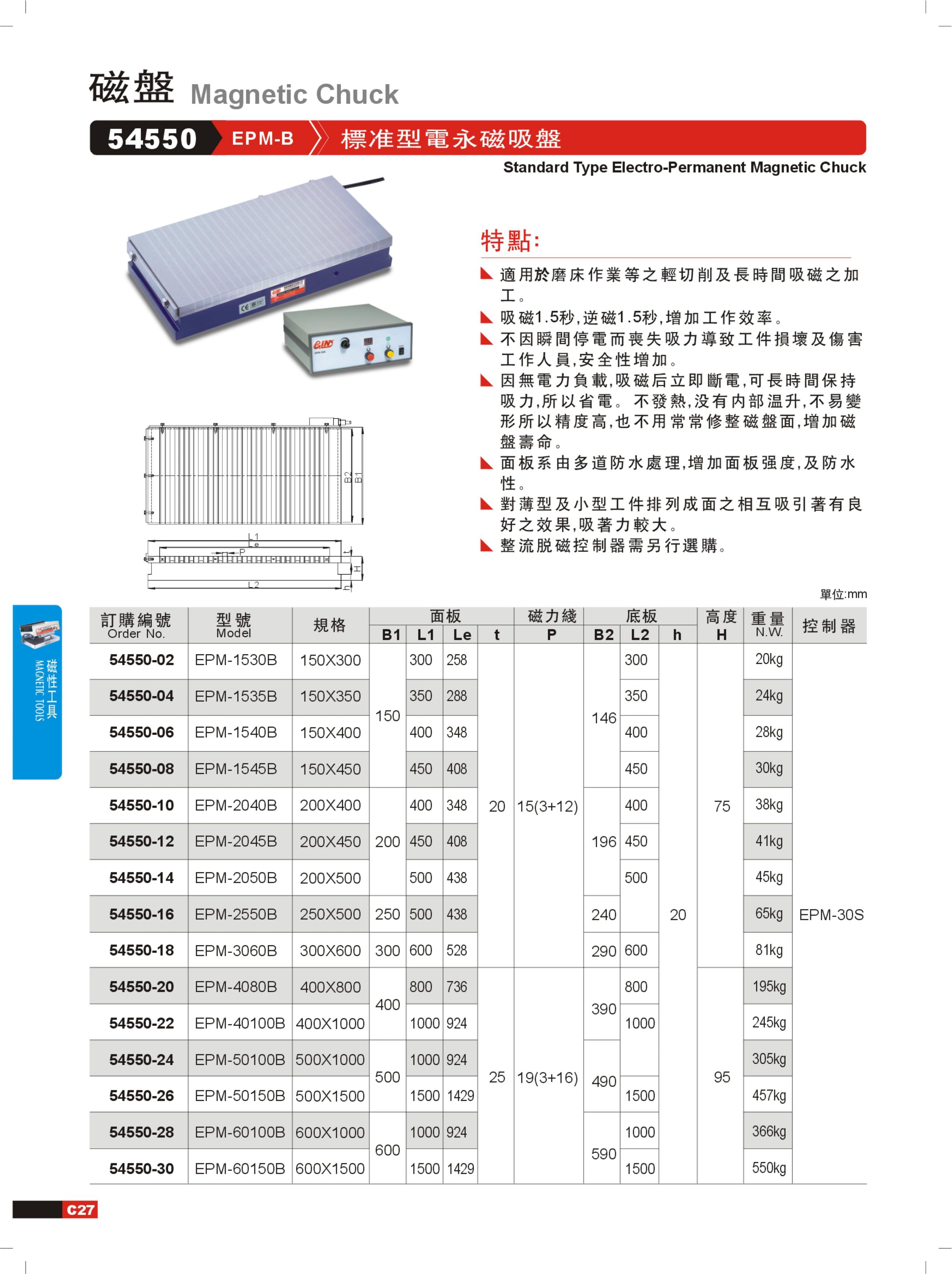 GIN(精展) EPM-2050B 54550-14 标准型电永磁吸盘