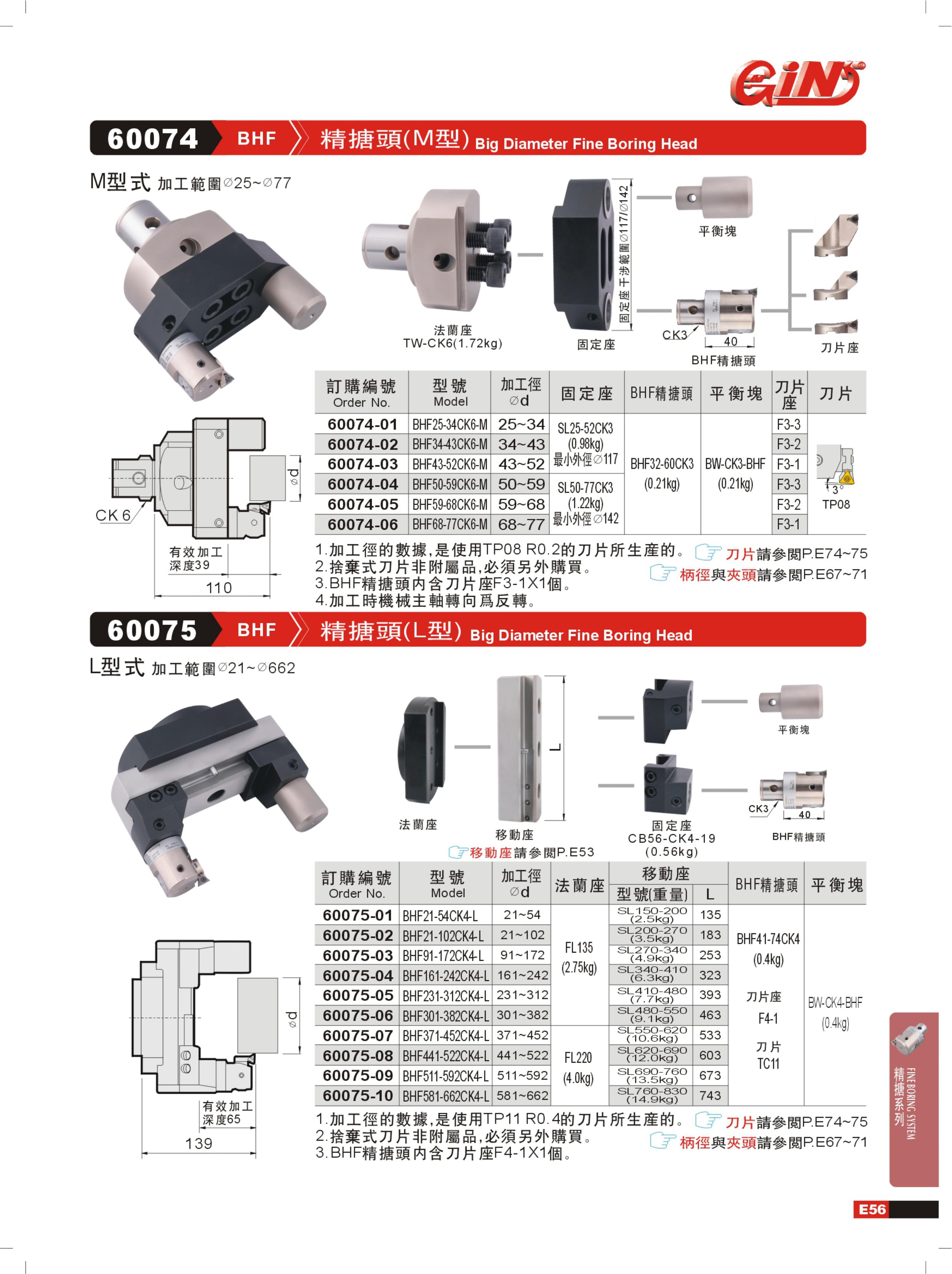GIN(精展) BHF371-452CK4-L 60075-07 精搪头(L型)