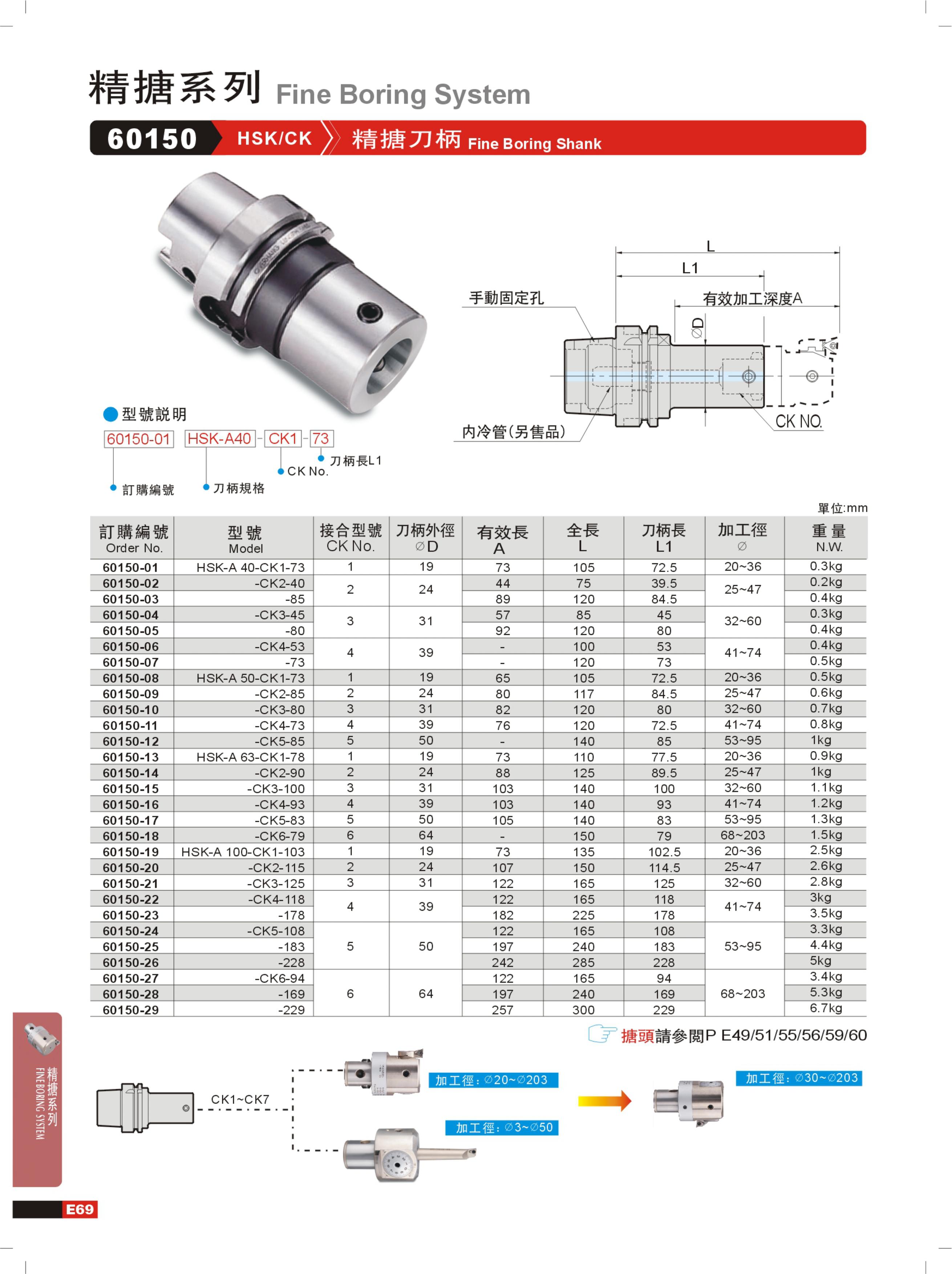 GIN(精展) HSK-A50-CK5-85 60150-12 精搪粗搪用刀柄