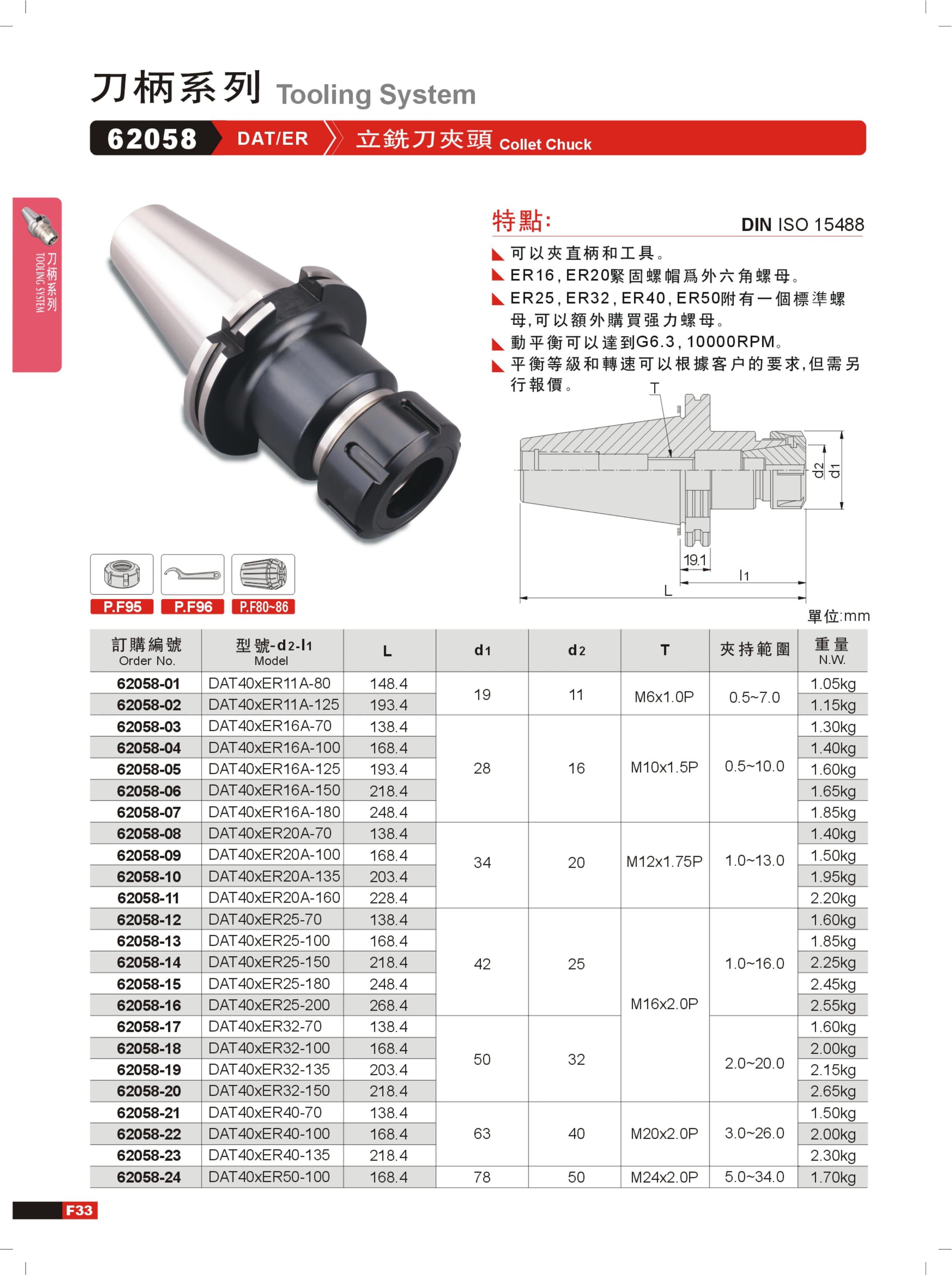 GIN(精展) DAT40*ER20A-100 62058-09 立铣刀夹头