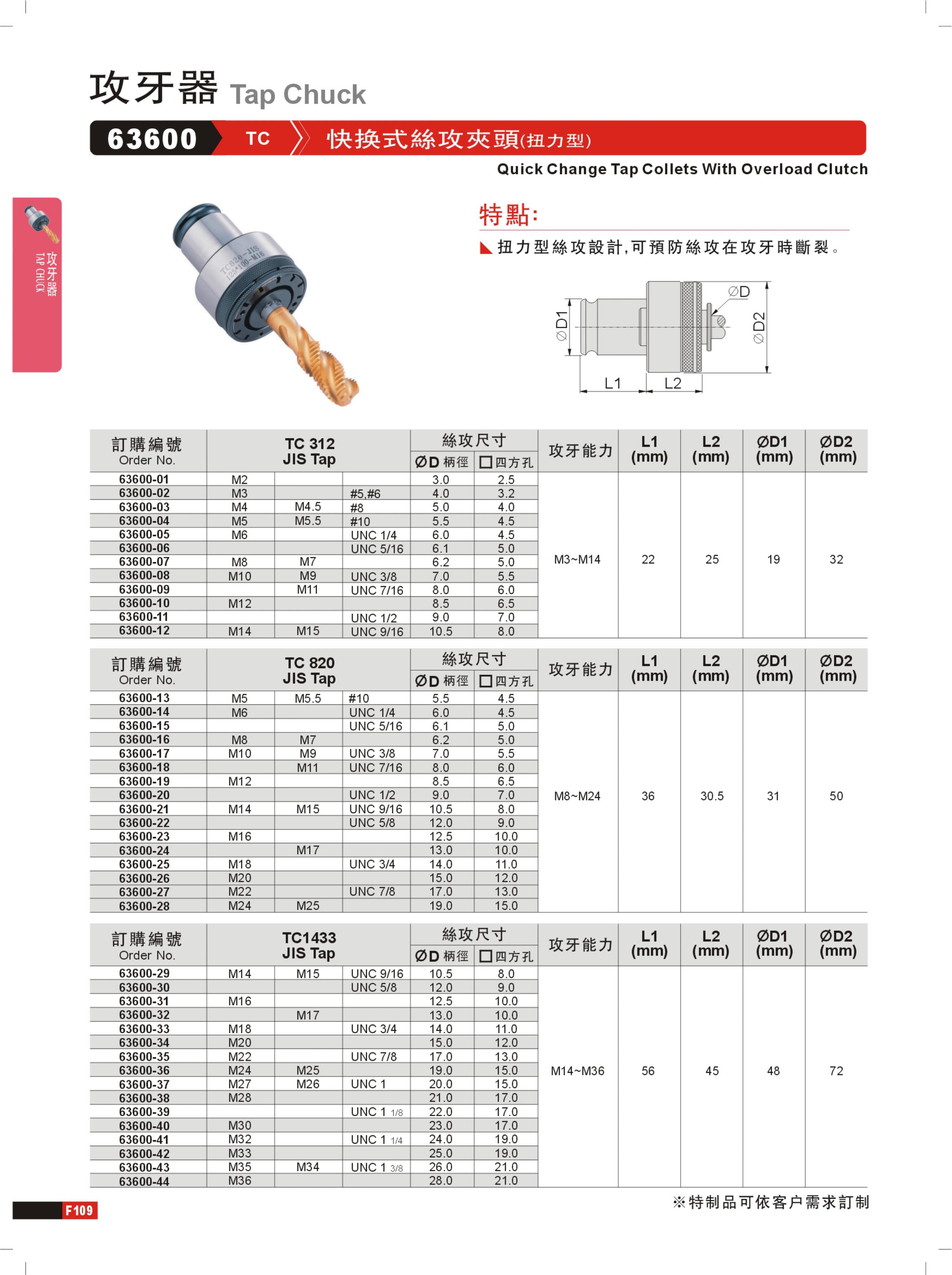 GIN(精展) TC1433JIS 63600-32 快换式丝攻夹头(扭力型)
