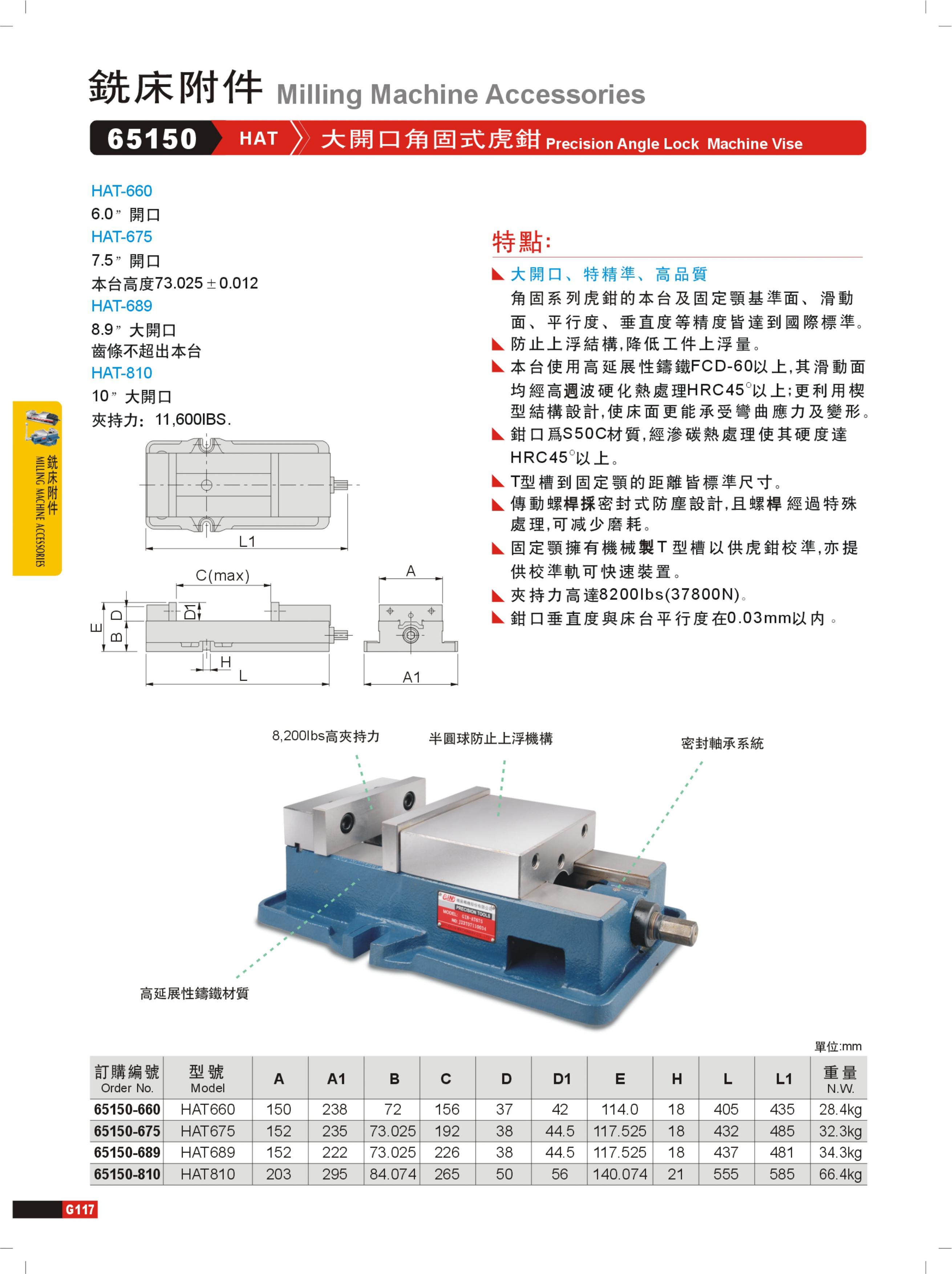 GIN(精展) HAT810 65150-810 大开口角固式虎钳(不含底盘)