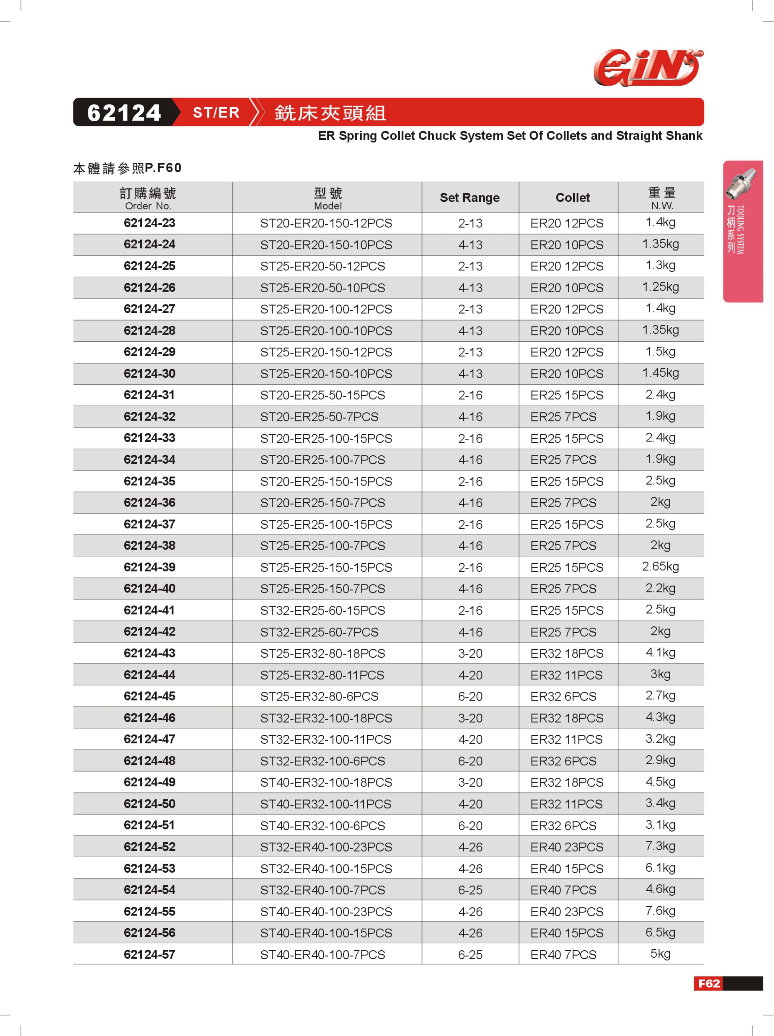 属于GIN精展ER弹簧夹头系统,型号ST25-ER20-100-12PCS,对应订购编号62124-27