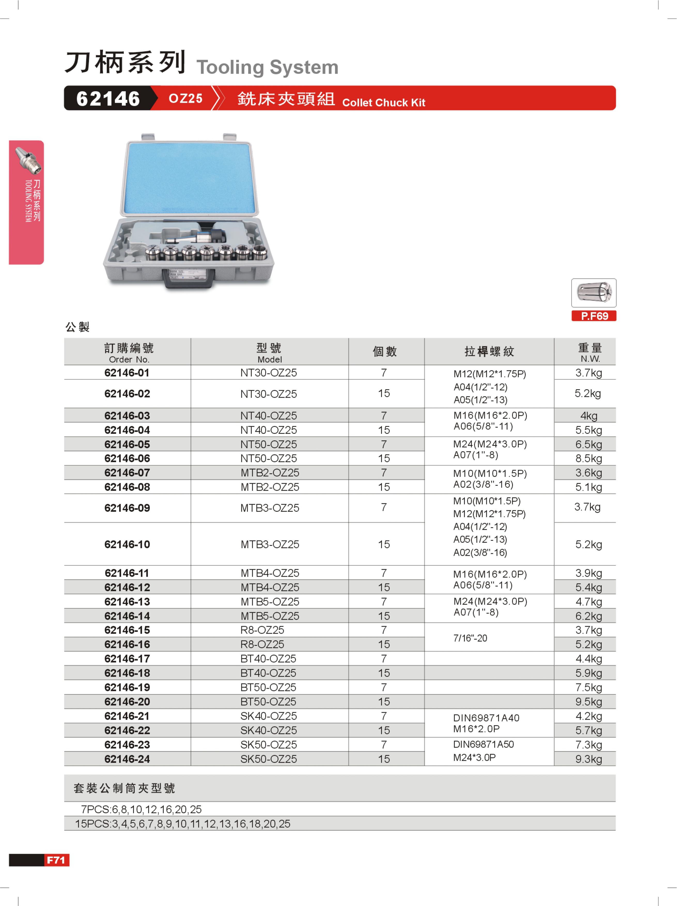 GIN(精展) NT40-OZ25(5/8''-11) 62146-04A06 铣床夹头组(公制)