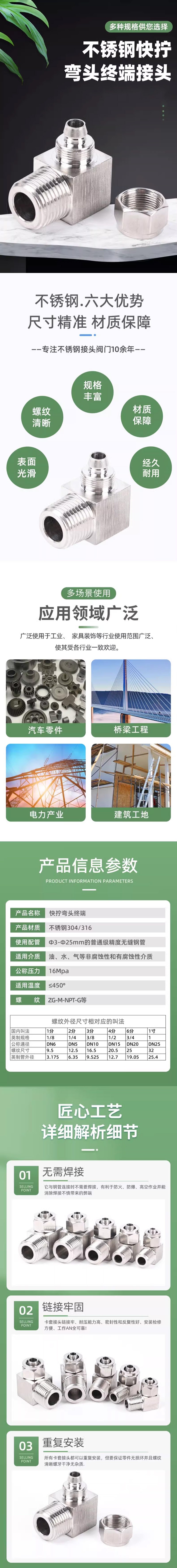 威尔克VRK 304不锈钢快拧弯头 ZG1/4-Φ12*10 VKB515