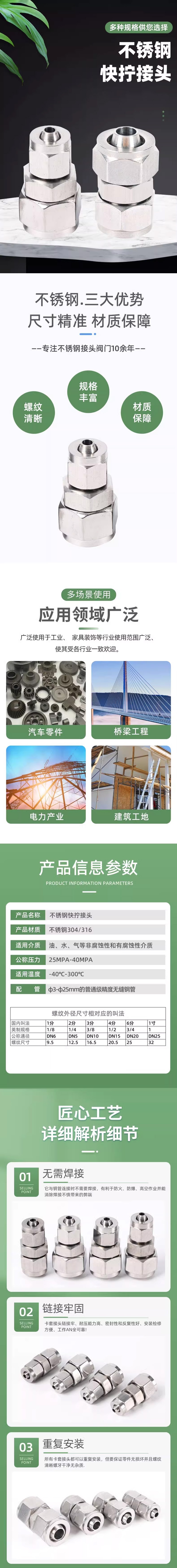威尔克VRK 304不锈钢快拧接头 变径直通Φ12*8-φ10*6.5 VKB716
