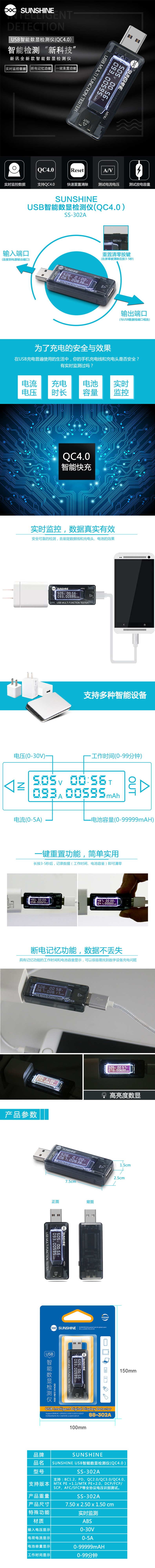 SUNSHINE SS-302A USB智能数显电流电压检测仪