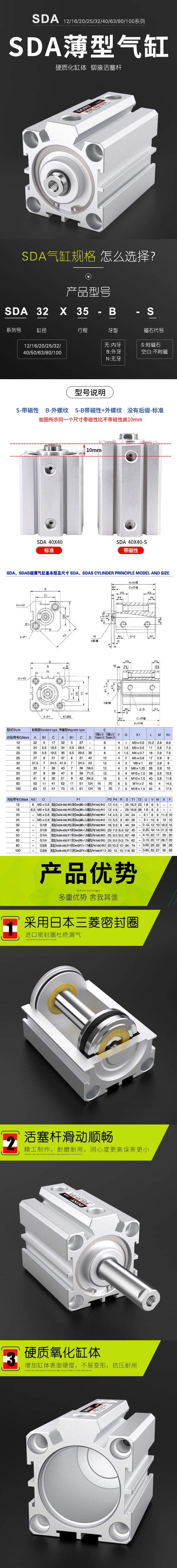 威尔克VRK SDA系列气动小型薄型气缸 SDA50×35-S【带磁】VKB1890