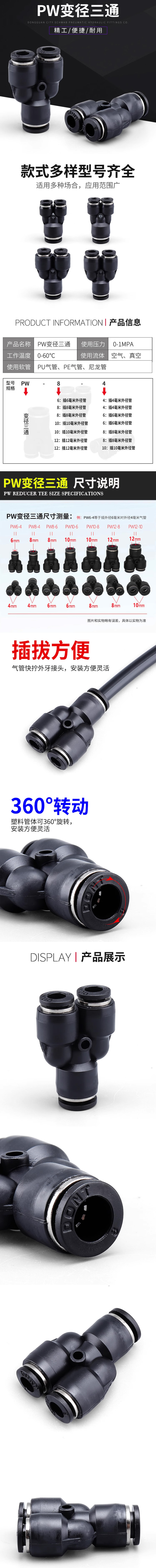 威尔克VRK 精品Y型PW变径三通快速接头 PW6-4-4/白色 VKB1319