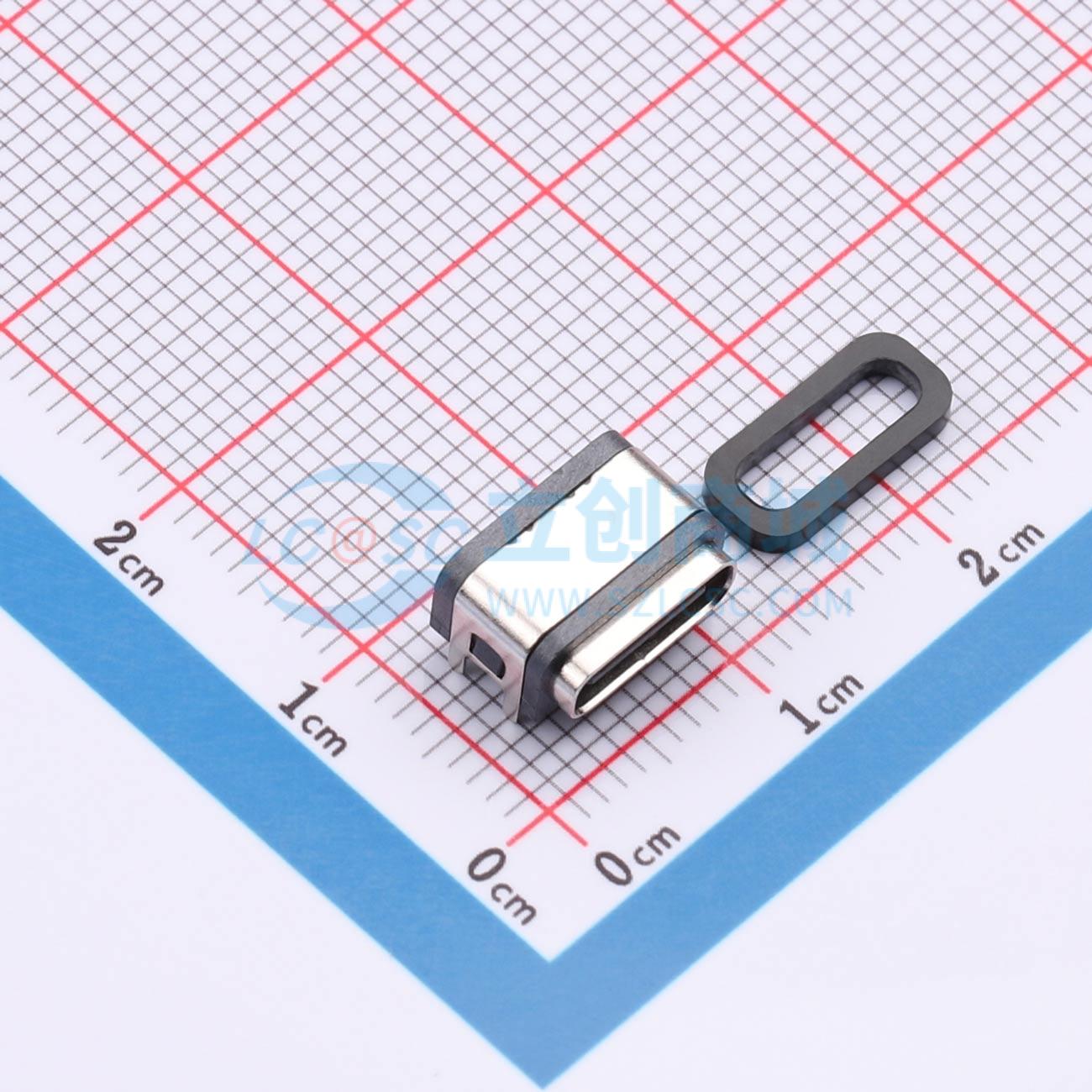 - ST-C-STF1-16PC-705 TYPE-C USB 卧式 单排16P防水板上 LCP黑色胶芯带柱 SUS外壳四脚 IPX7防水 配方型硅胶防水圈 编带包装 RoHS