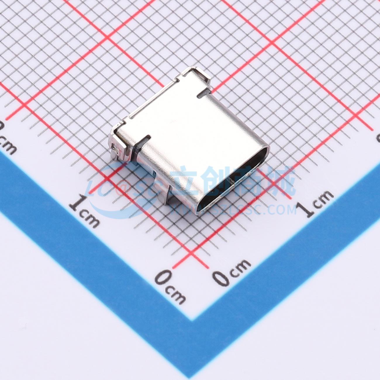 - ST-C-24DT-100 TYPE-C 24PIN 板上前插后贴母座 单壳 外壳四脚插板 L=10.0mm 编带包装 RoHS