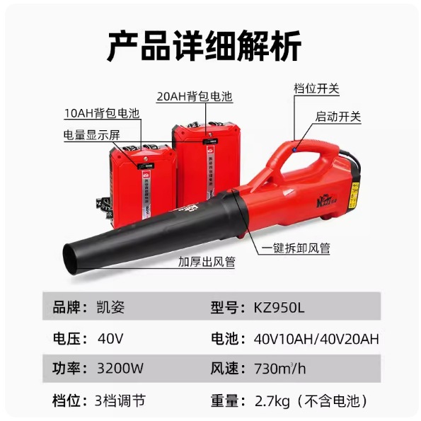 凯姿 吹风机 KZ950L 40V-20AH 电动手提式吹风机鼓风机大功率吹雪机锂电吹树叶