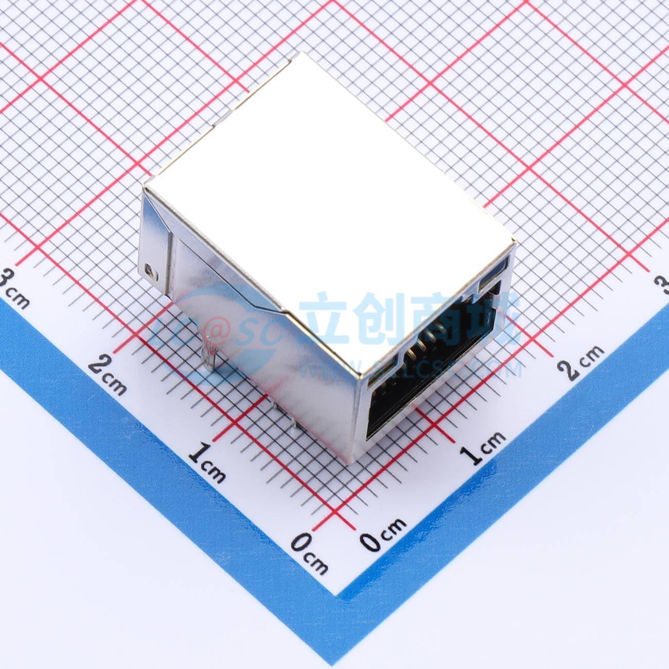 百兆网口 RJ45-8P/8C TAB-UP H=21.5mm 弯插 带灯无弹 带变压器