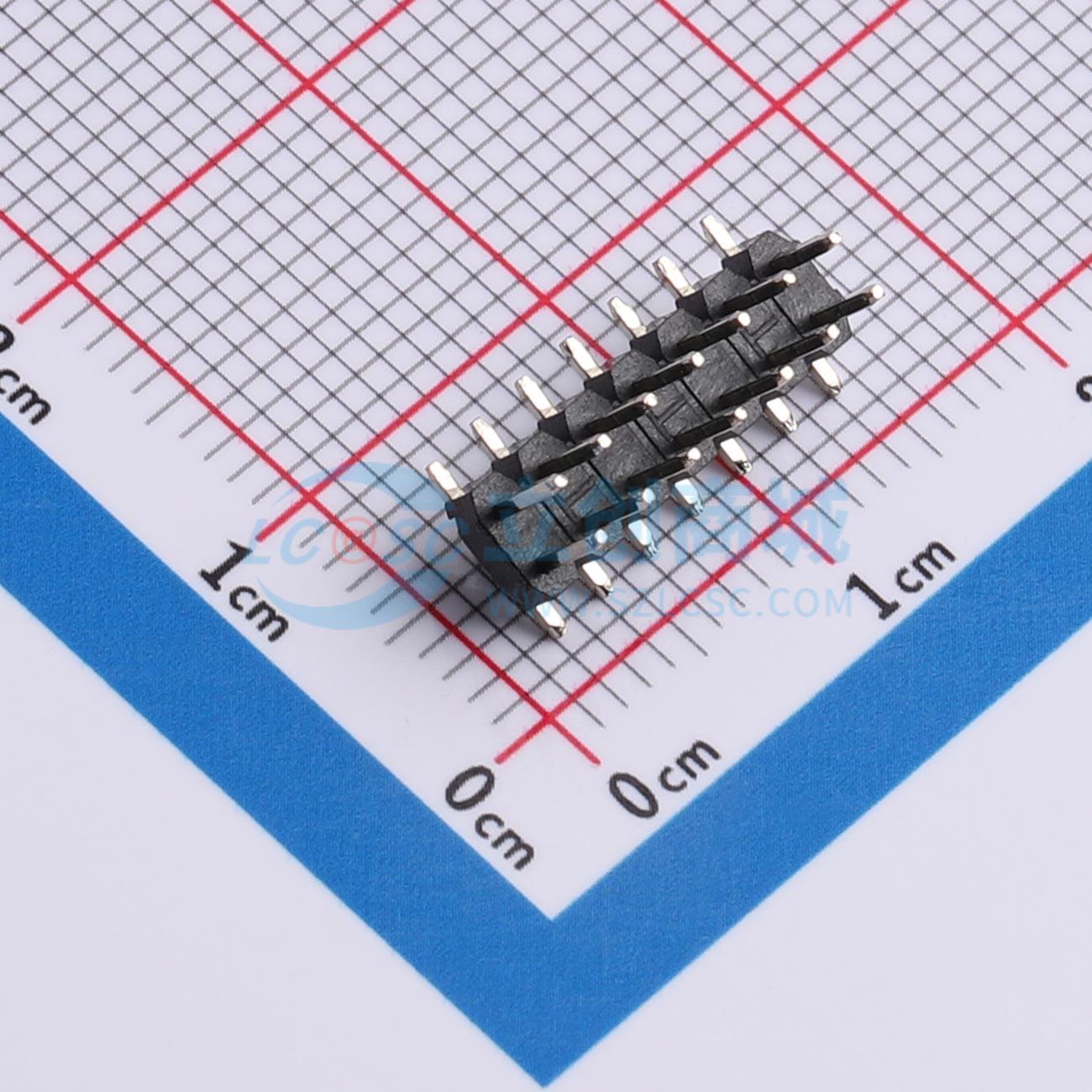 - 排针PH2.0/2x7P/塑高2.0/双排立式贴片带柱PA4.0/PC6.5