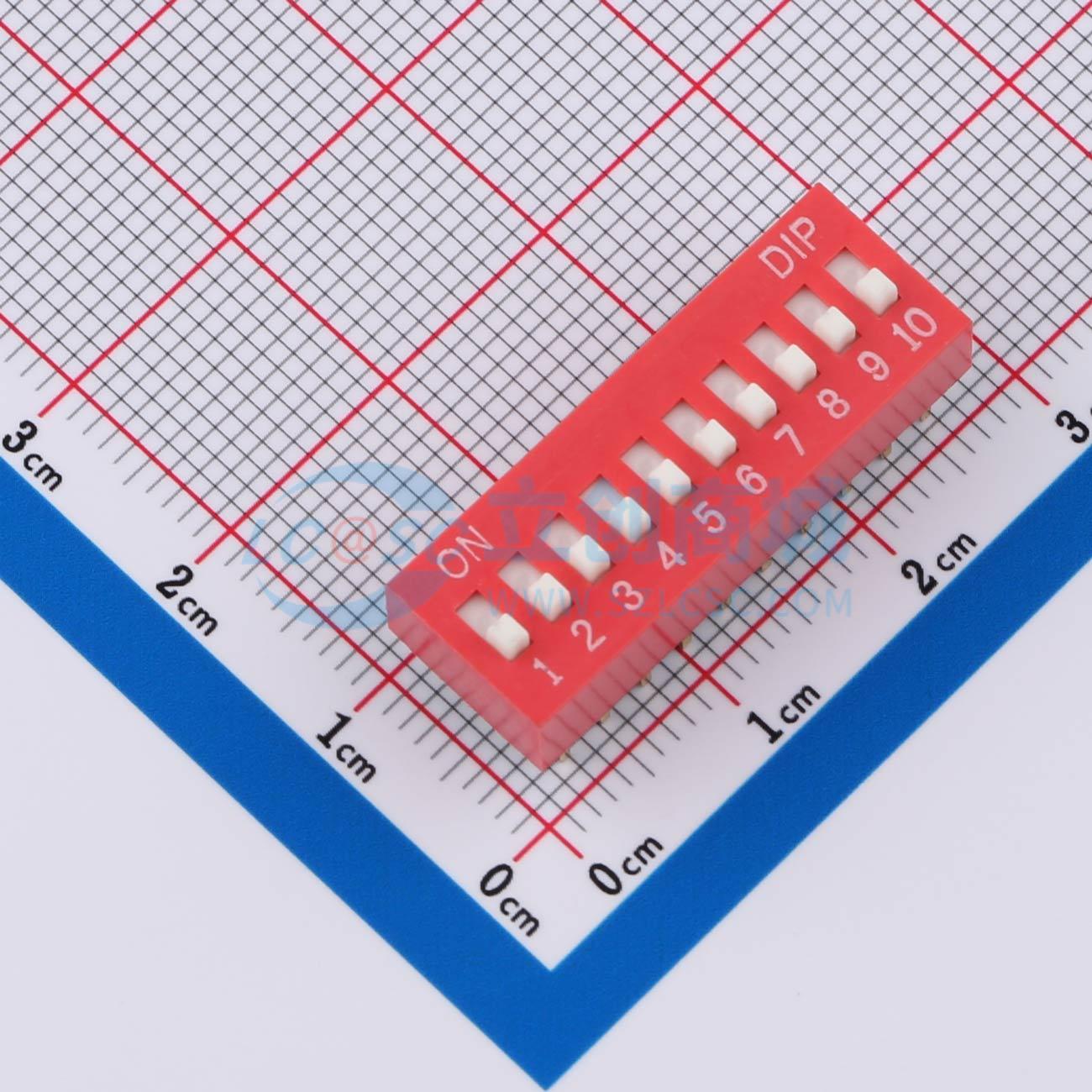 间距2.54mm 平拨,凸起式 10位拨码开关