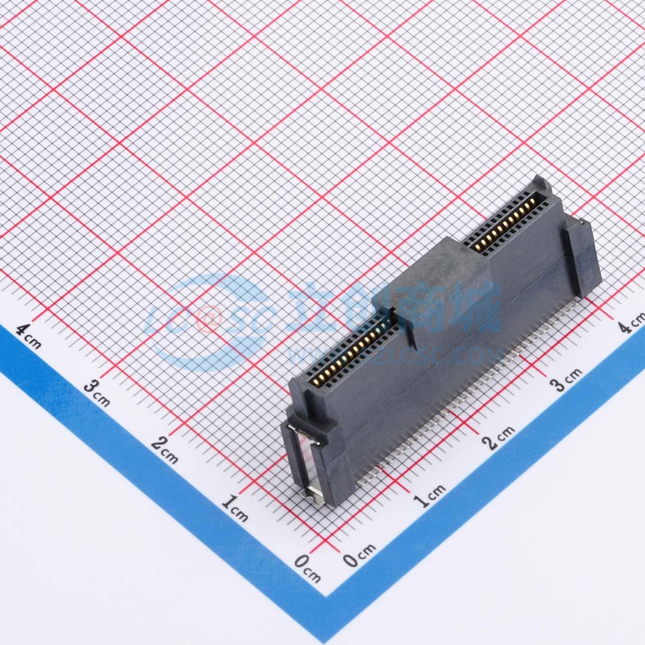 0.80mm Pitch 180º SMT型 H13.4mm 双排单槽带柱母座 80pin 黑色 点镀金G/F,雾锡