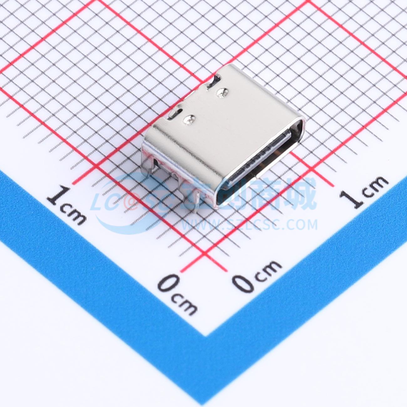 - TYPE-C母座 16P 四脚插板 短体L6.5 LCP 黑色 C7025 1u" 304 镀亮镍 脚长1.1(无弹片)有柱
