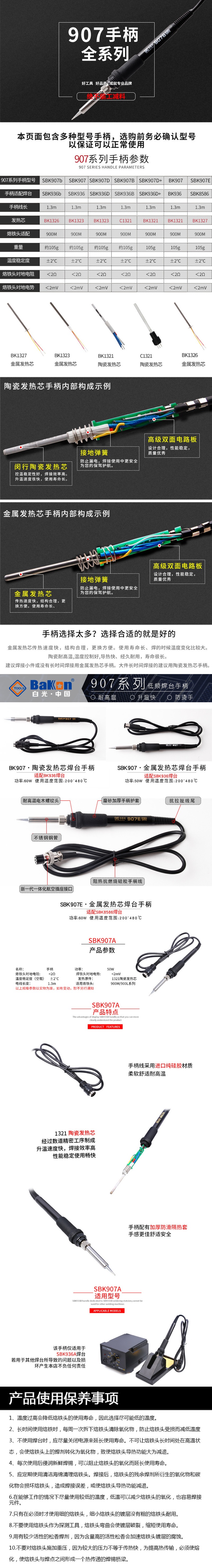 Bakon(深圳白光),无铅焊接恒温调温焊台电烙铁手柄低频焊台手柄(K嘴)烙铁手柄SBK907B,适用焊台SBK936B