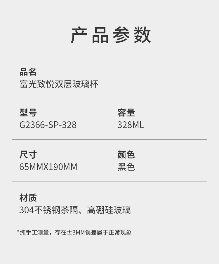 富光 G2366-SP-328 328ml富光致悦双层玻璃杯 只