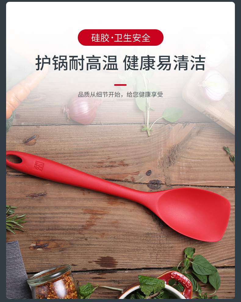 硅胶铲防刮痕、易清洗、不藏污垢,能延长不粘锅使用寿命