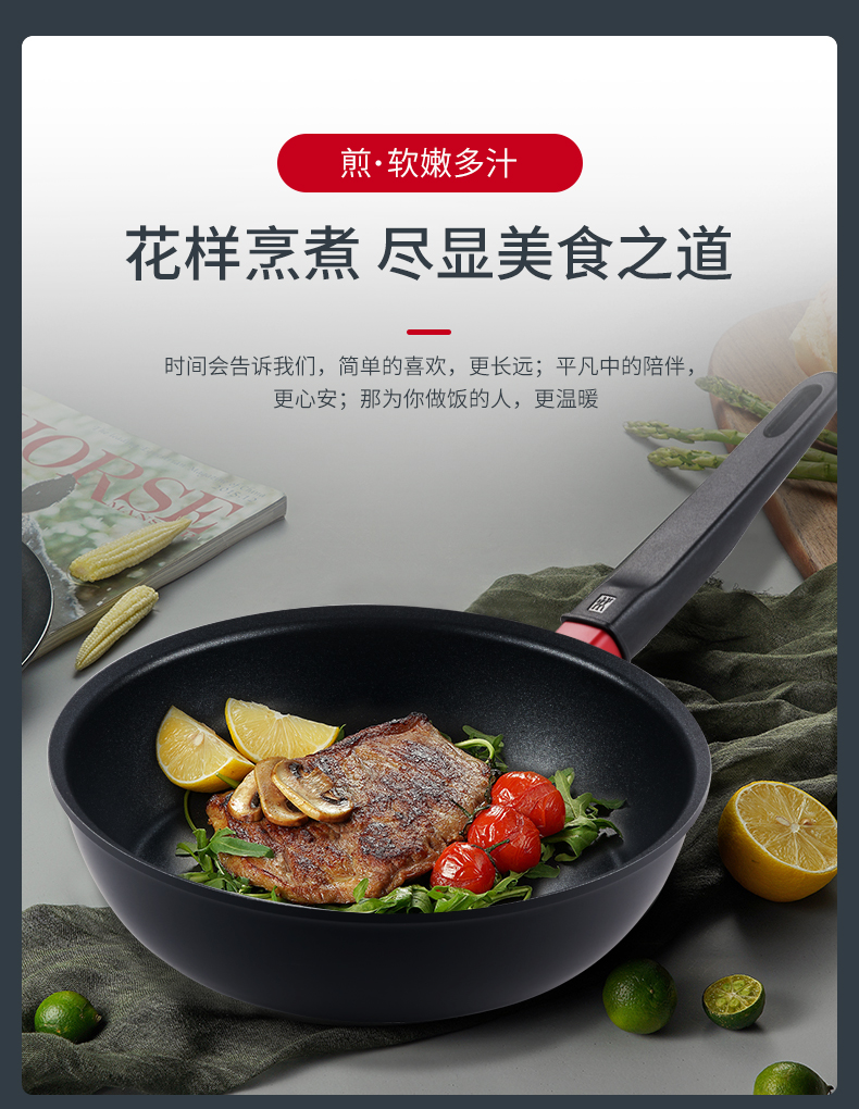 煎炒锅采用定制香槟金DURASLIDE® ULTRA不粘涂层,强力不粘,翻炒顺滑易清洗