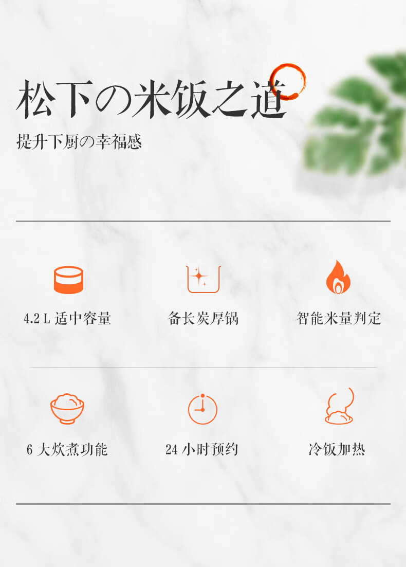 备长炭厚锅内胆,导热性好且蓄热持久,米饭受热均匀更香甜