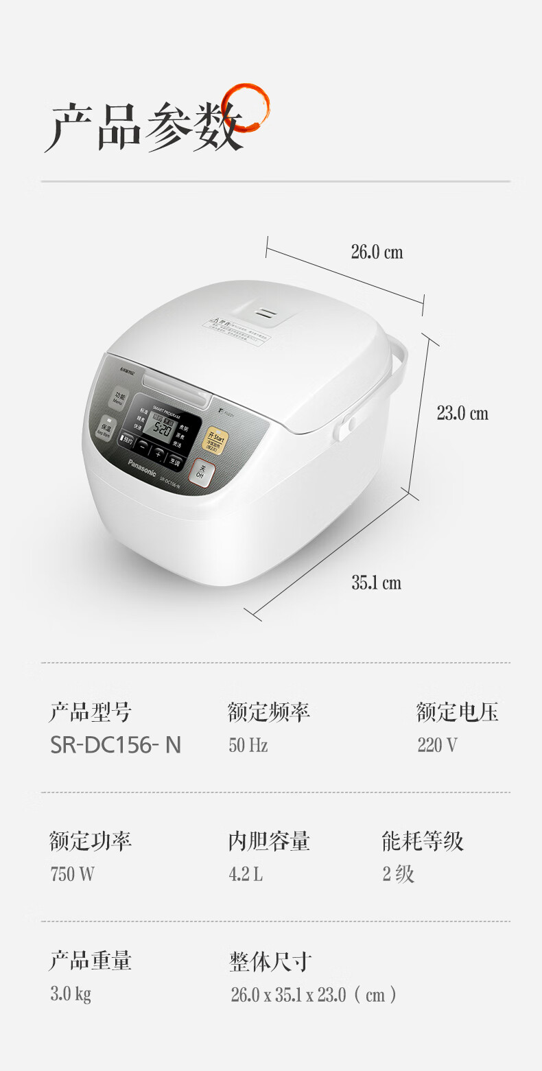 4.2L适中容量,可煮8.3杯米,适合2-6人家庭使用