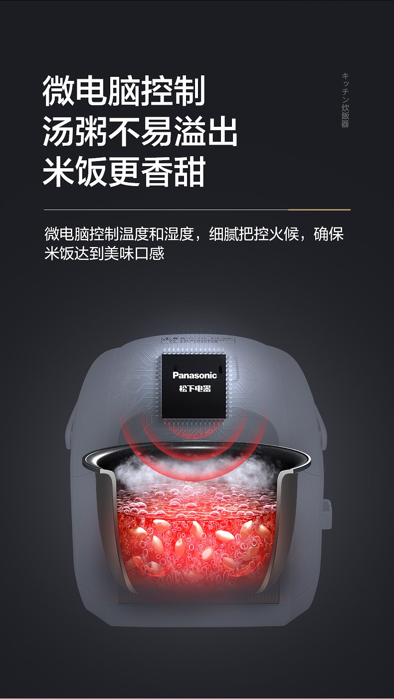 微电脑控制技术,精准调控温度湿度,确保米饭香甜,汤粥不易溢出