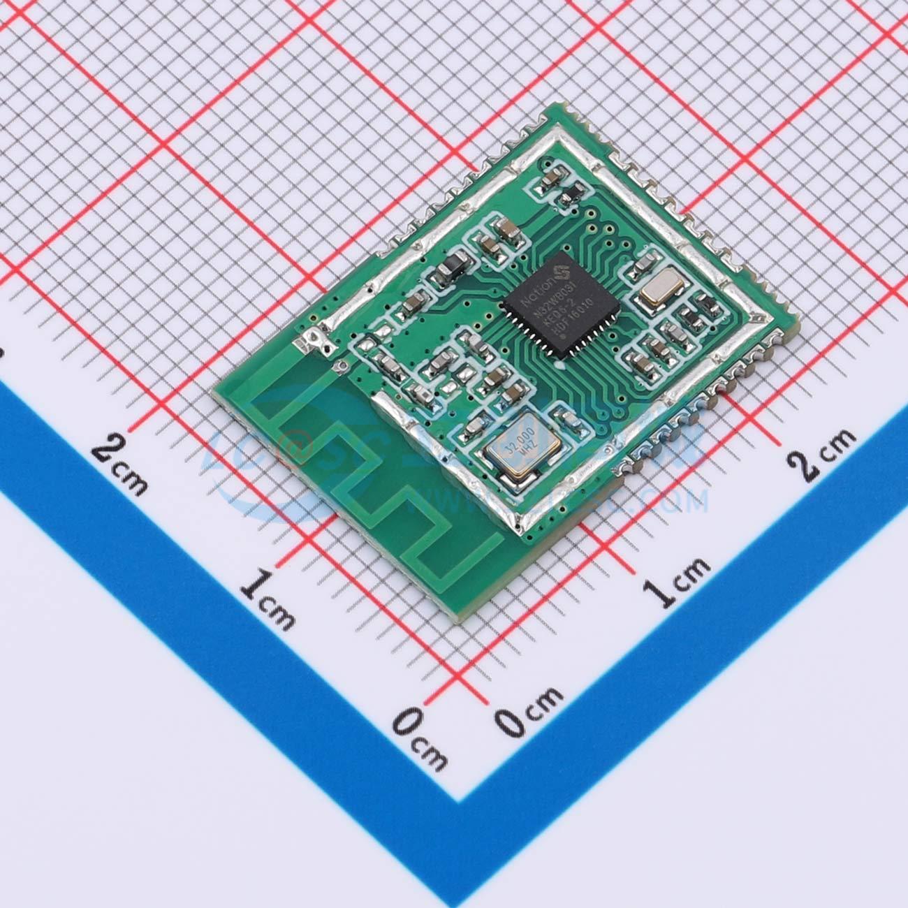 - 本产品是一个高度集成的BLE5.1模块,可用来在2.4GHzISM频段内做低速率、近距离无线通信。模组基于N32WB03X蓝牙无线收发芯片,内部集成32位ARMCotex-M0处理器,最高工作主频64MHz,同时内置48kB RAM,512kB Flash,可以支持模拟或者数字外设。模块提供了低功耗高性价比的蓝牙传输应用。