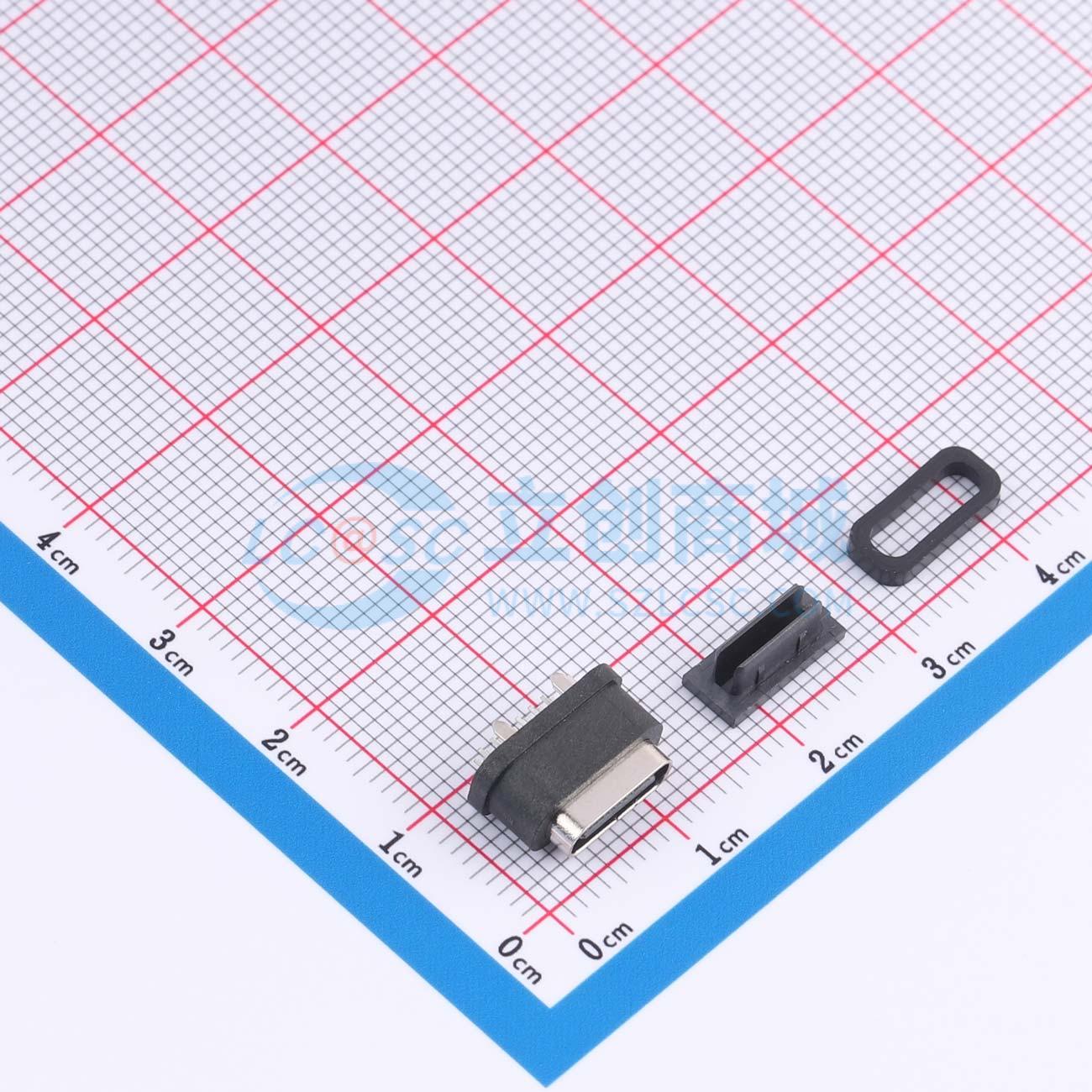 - 防水USB TYPE C 母座16P 180°DIP 7.2H 四脚全插