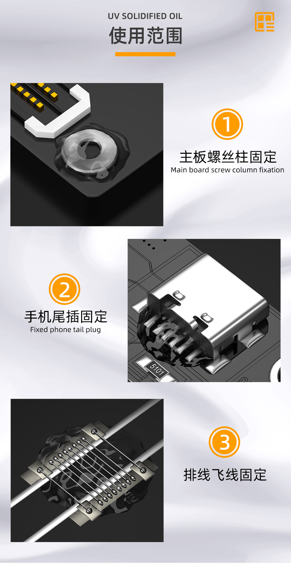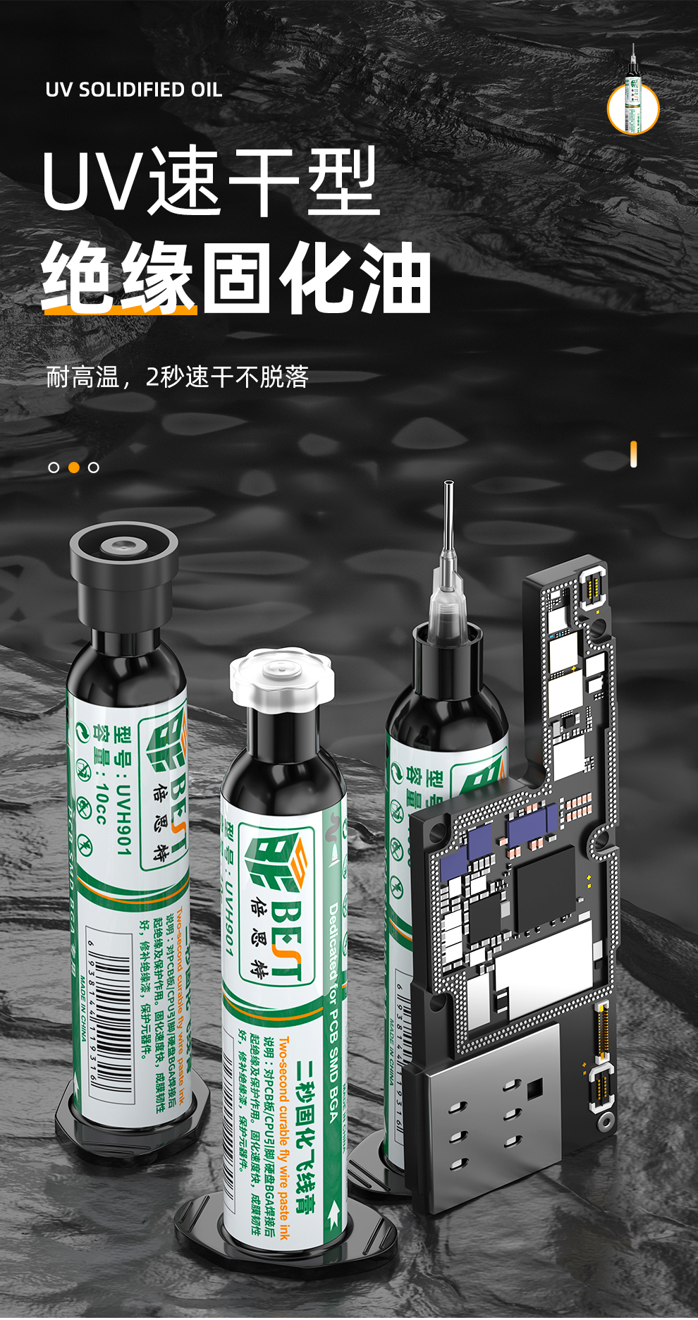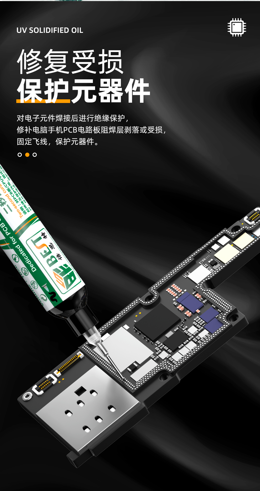 适用于BGA、PCB、SMD等电子元件的阻焊层修复、飞线固定及元器件保护
