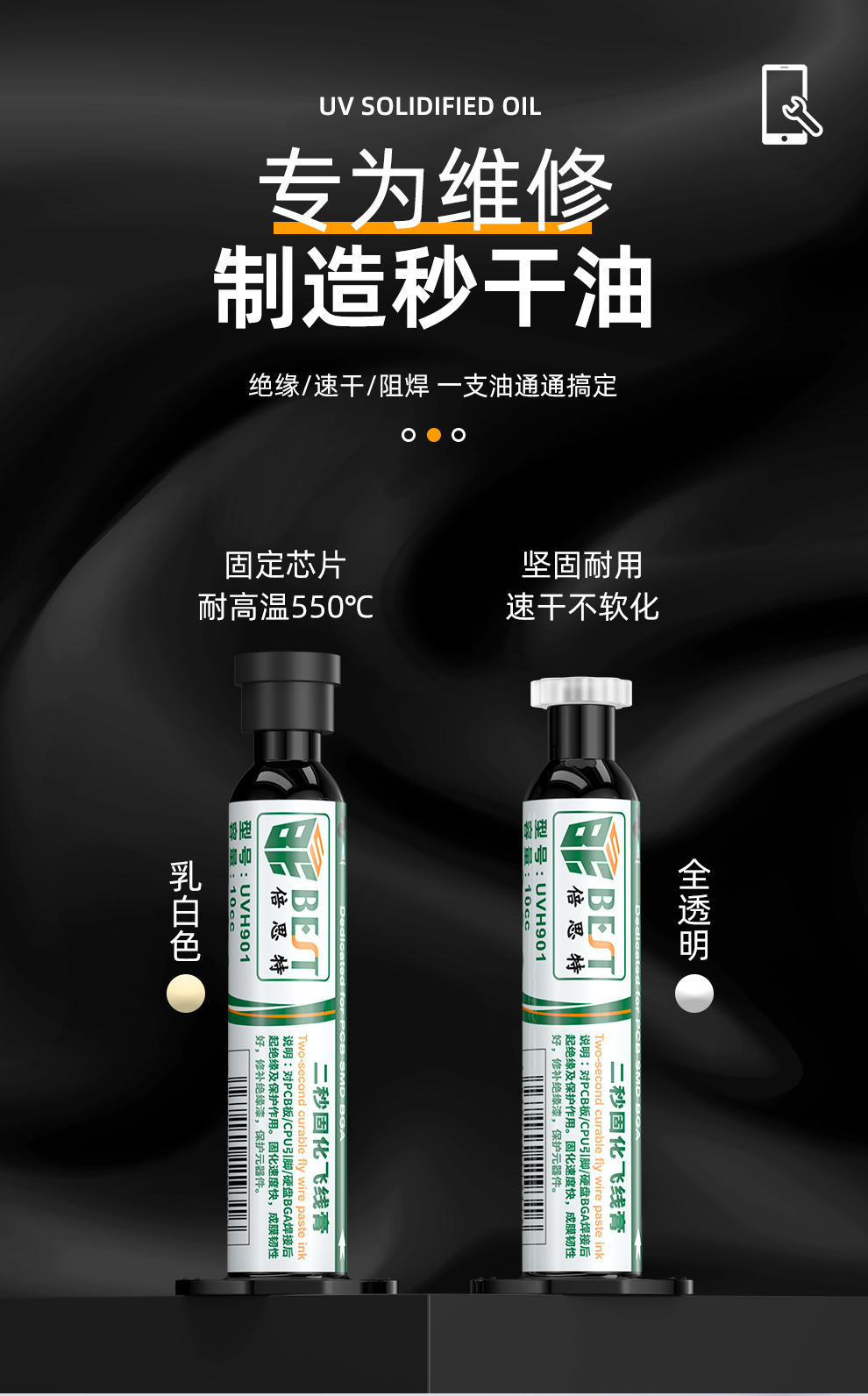 倍思特UV速干型绝缘固化油 紫外光线耐高温阻焊BGA PCB线路板专用保护漆BST-901 乳白